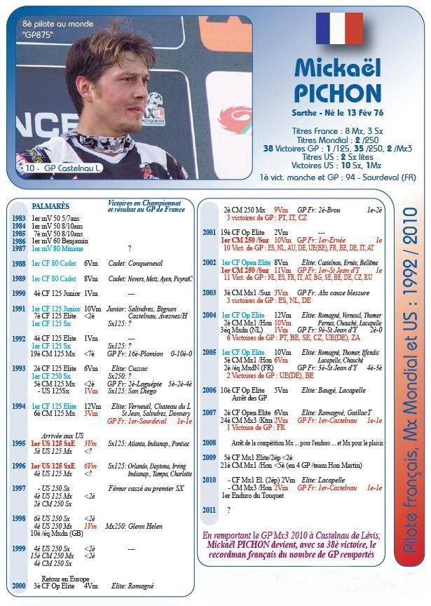 Совсем недавно Микаэль Пишон приезжал к Митчу Пэйтону на завод Pro Circuit (Корона, Калифорния). Микаэль вел  переговоры о нескольких молодых французских гонщиках. Для тех, кто не знает, Пишон, двукратный чемпион AMA Суперкросс Восточного региона  (1995 и 1996) и двукратный  Чемпион мира в классе 250сс  (2001 и 2002). В прошлом он был одним из самых талантливых и уникальных гонщиков в мотокроссе.