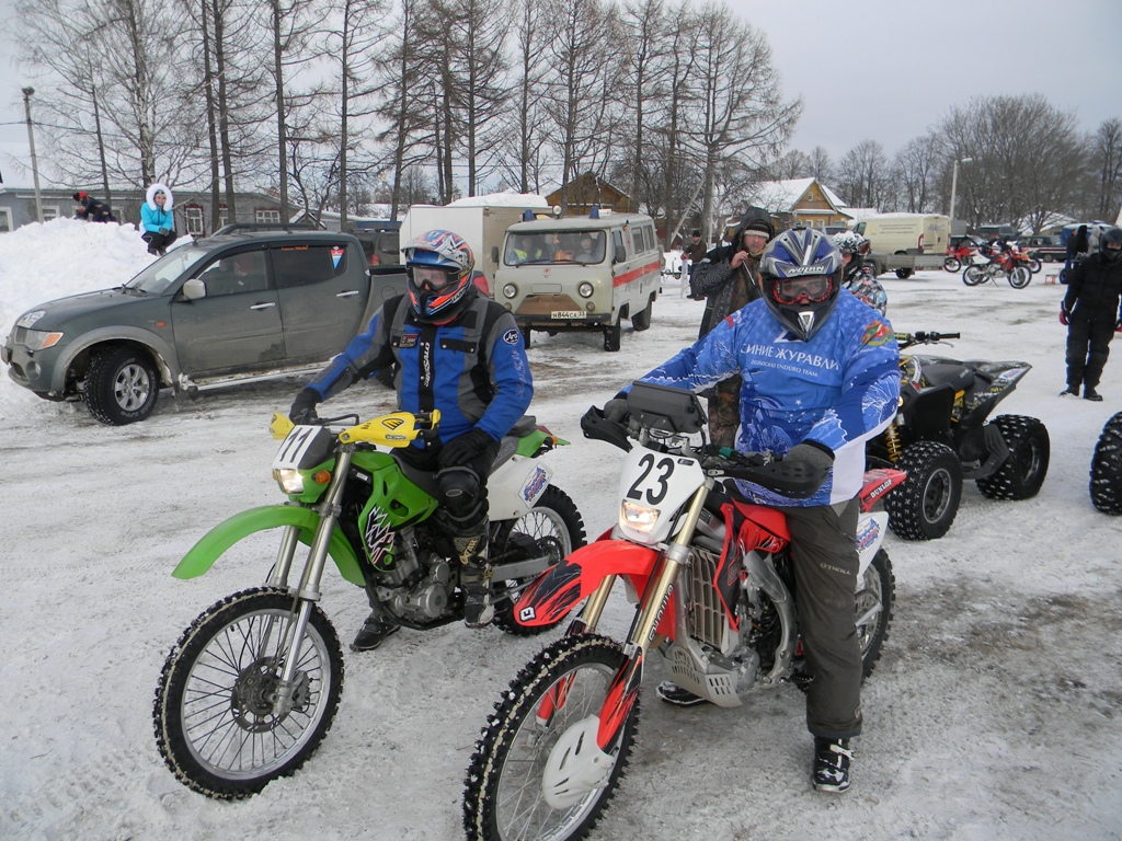 Второй день 27 января был основным и гораздо более сложным. Участников Чемпионата России ждали 2 спецучастка по70 км, а Чемпионат МФР ехал ровно половину дистанции. Свою лепту внесли непрекращающиеся всю неделю снегопады, в результате которых часть трассы была почищена не так хорошо, как хотелось бы мотоциклистам, вдобавок мотозачет ехал позади автомобилей, которые к тому времени уже успели проехать по трассе 3 круга. В середине дистанции был пункт дозаправки, где команды ожидали своих гонщиков, примерно через 1,2 часа после старта на дозаправку прибыл первый квадроциклист – это был Бердников Антон, он рассказал, что трасса чрезвычайно тяжелая, глубокие колеи, ехать очень сложно. Первым из мотоциклистов на дозаправке был действующий Чемпион России Дмитрий Артамонов из команды «Кутузовский Редут», Дмитрий сильно упал на дистанции – вылетел через руль и буквально воткнулся головой в дорогу, на шлеме сломан козырек, спасибо помогла защита шеи, обязательная для данного вида соревнований, без нее все могло быть гораздо печальней. Дмитрий подтвердил, что трасса крайне сложна, особенно середина, глубокие колеи, засыпанные снежной шугой, замерзшие грунтовые колеи под снегом. Он рассказал, что около КП1 стоит Алексей Попов, у которого сломался мотоцикл. Недалеко от старта стоит Алексей Муравьев, он вылетел и в попытке выбраться из снежного плена, порвал привода своего Side-by-side, он жжет костер и ждет закрытия трассы, для возможности эвакуации. Буквально через минуту на дозаправку приехал и сам Алексей Попов, мотоцикл удалось реанимировать самостоятельно, он продолжает гонку. Спортсмены продолжали прибывать на дозаправку и уходили на 2 круг. Финишировал первый гонщик из зачета эндуро, им оказался Сидоров Алексей, через 15 минут приехал Яковлев Павел, затем Александров Евгений. Сидоров Алексей не участвовал в ССУ, что допускается регламентом, но с пенализацией в размере двух нормативов, в данном случае это 20 минут, которые и не позволили ему занять итоговое первое место в классе. В 16:50 минут финиширует Бердников Антон, он первый из Чемпионата России. Рассказывает, что мотоциклистам очень тяжело, много падений. Финиширует Артамонов Дмитрий, через 20 минут после него, финиширует Сергей Пряхин. На втором круге у этих спортсменов также не все прошло гладко, у Дмитрия затянуло ногу в заднее колесо, что привело к падению, мотобот спас ногу, но восстановлению не подлежит, у Сергея замерзла молния на кармане, где хранится контрольная карта – один из важнейших документов на ралли-рейде. Пришлось на КП разрезать штаны, чтобы ее достать. Солнце садится, продолжают финишировать участники, поступает информация, что на КП стоит сломанный мотоцикл Жадановой Екатерины, это единственная девушка – участник, между прочим, серебряный призер Чемпионата МФР 2012 года. Вылетев в лесу, она врезалась в дерево, в результате разбита передняя часть мотоцикла, перебиты тросы газа. С огромным трудом ей удалось доехать до КП, где ее оставили ждать подмоги. Финишируют Алексей Попов и Стас Усов, у Алексея снова были проблемы с мотоциклом, Стас ехал за ним и помогал товарищу по команде, если бы не он, то Алексей, скорее всего, не смог бы финишировать. Так отдав свое призовое место, Стас помог команде. Совсем стемнело, финиширует Лацис Петр на заднеприводном квадроцикле. Еще на пер