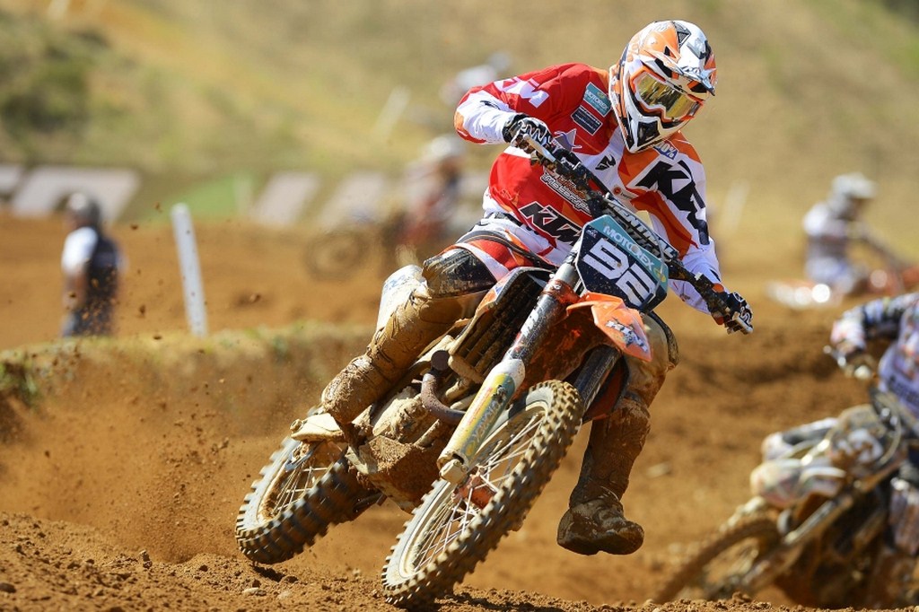 Неоспоримым победителем Гран При Португалии в классе МХ2 стал Джефри Херлингс: на заводском мотоцикле KTM, оснащенном шинами Pirelli Scorpion MX, голландец выиграл две гонки, что позволило ему остаться непобедимым в сезоне 2013 года. Выбрав шиныScorpion MX MidSoft 32 F для переднего колеса и Scorpion MX MidSoft 32 для заднего, которым также отдали предпочтение большинство гонщиков Pirelli, действующий чемпион мира с легкостью одержал победу на шестом Гран При сезона, и его мечты об идеальном сезоне уже выглядят более чем реалистично, особенно если учесть то, что он на круг обогнал гонщиков вплоть до десятого места. Несколько столкновений в первой гонке и ухудшение формы по сравнению с предыдущими двумя этапами не позволили его напарнику по команде KTM Джорди Тиксьеру занять место выше четвертого. Но, тем не менее, ему удалось сохранить за собой второе место в борьбе за чемпионский титул, удерживая позади себя Глена Кольденхофа.