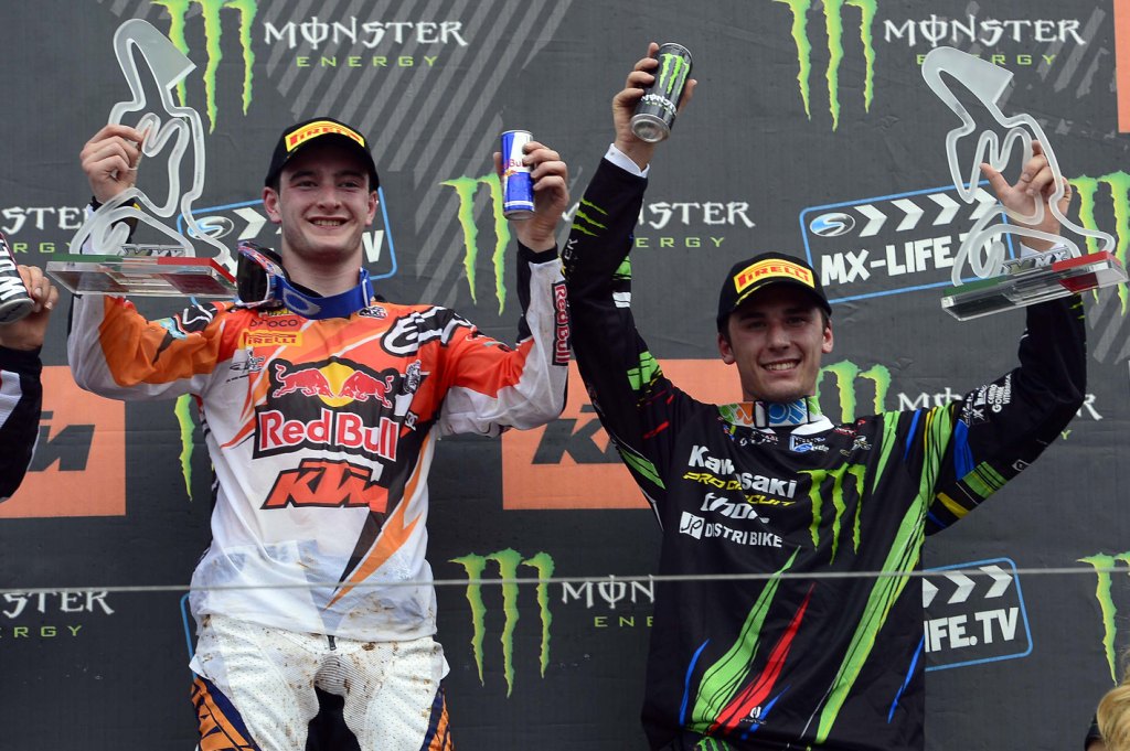 Борьба в классе MX1 оказалась менее предсказуемой и разгорелась между Готье Полином и Антонио Кайроли. В итоге победа досталась французу, сумевшему опередить действующего чемпиона мира и лидера класса на заводском мотоцикле KTM с шинамиPirelli Scorpion MX MidSoft 32. Тем не менее, на своей домашней трассе Кайроли стал для огромного количества болельщиков главным героем: не обращая внимания на травмированное колено, он до самого финиша преследовал своего соперника. В конце концов, завоевав четвертое и второе места в двух заездах, «222» был вынужден довольствоваться третьей ступенью на подиуме. Он пропустил вперед своего напарника по команде Кена де Дайкера, но все равно опережает Полина на 51 очко в борьбе за чемпионский титул. Неудача постигла Клемана Десалля, который ранее занимал вторую строку в личном зачете: на заводском мотоцикле Suzuki с шинами Scorpion MX MidSoft 32 он одержал уверенную победу в первой гонке, а во второй был вынужден сойти с дистанции из-за неисправности электрической системы. Десятый этап — Гран При Швеции — пройдет 30-го июня в Уддевалла.