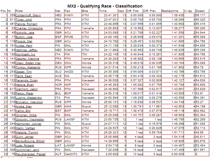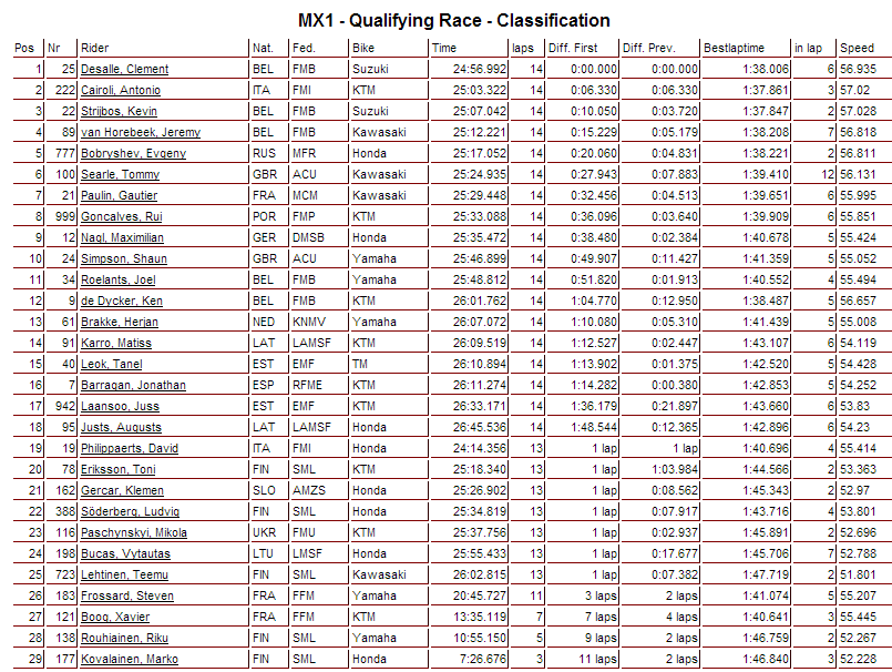 Результаты квалификационных заездов в классах МХ1 и МХ2...