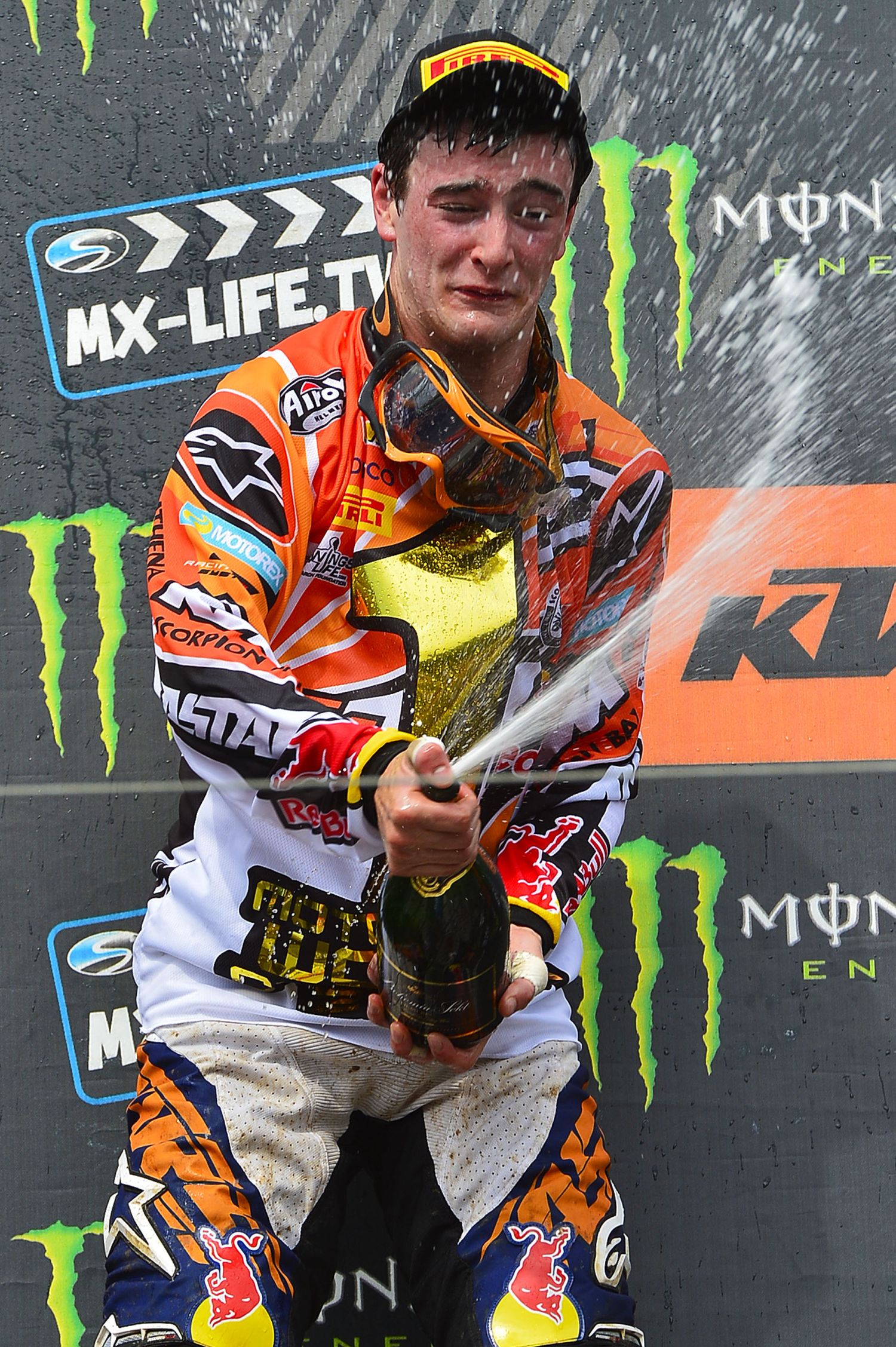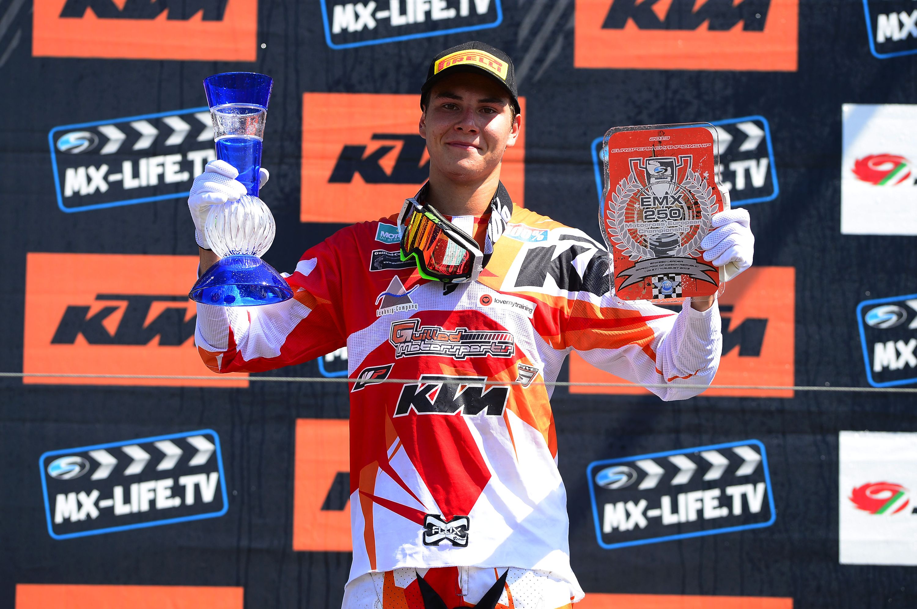 Гонщик заводской команды KTM управлял мотоциклом 250SX-F, оснащенным Pirelli Scorpion MX MidSoft 32F спереди и ScorpionMX MidSoft 32 сзади. Ему удалось защитить свой титул по результатам первых четырнадцати этапов из семнадцати. В Чехии Херлингс вновь был неудержим и завоевал двенадцатую двойную победу подряд в текущем сезоне, опередив других гонщиковPirelli Кристофа Шарли, Александра Тонкова, Алекса Лупино и своего напарника по команде Джорди Тиксьера. По результатам этапа последнему из названных гонщиков удалось сохранить за собой второе место в личном зачете класса MX2.