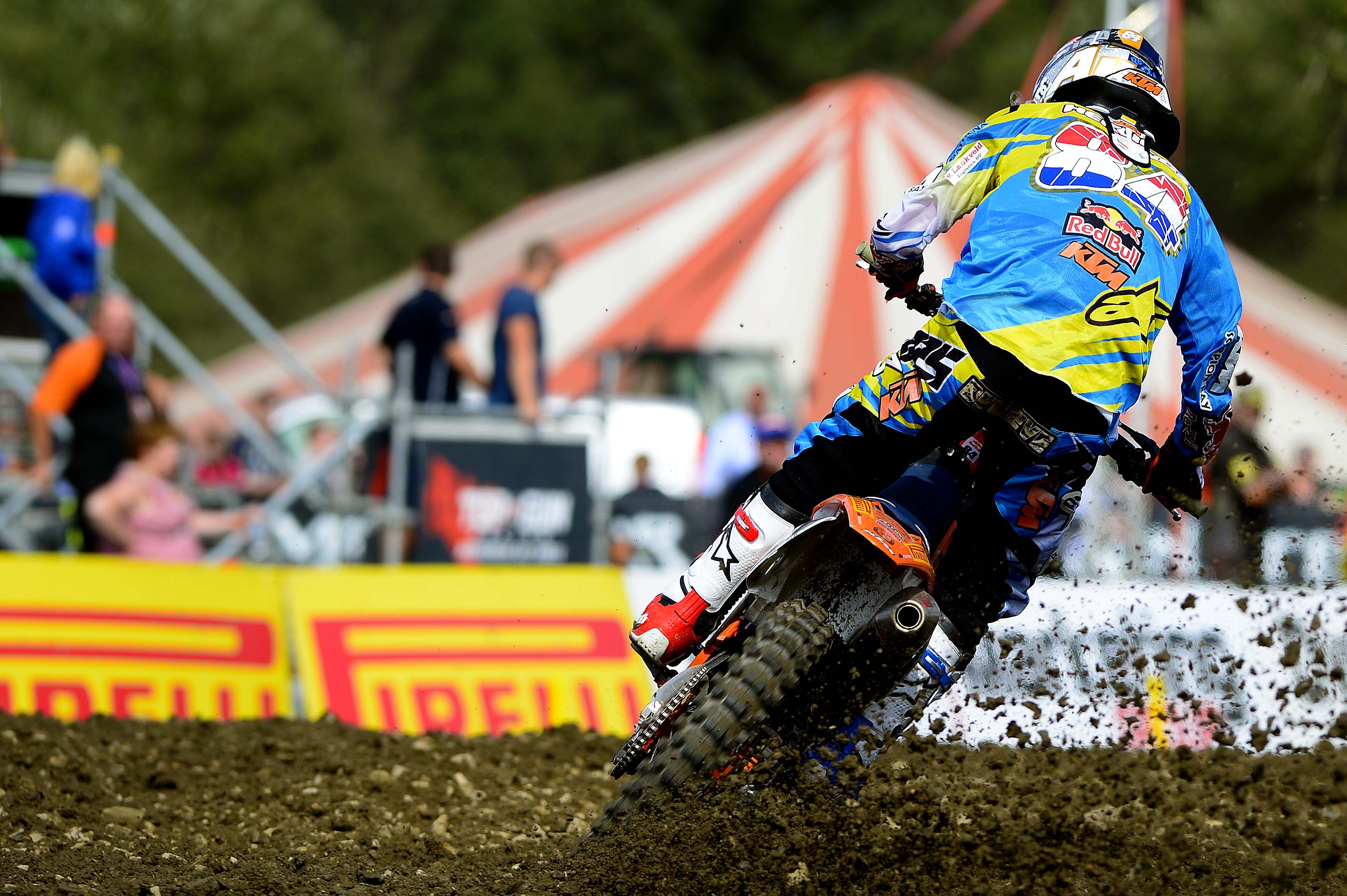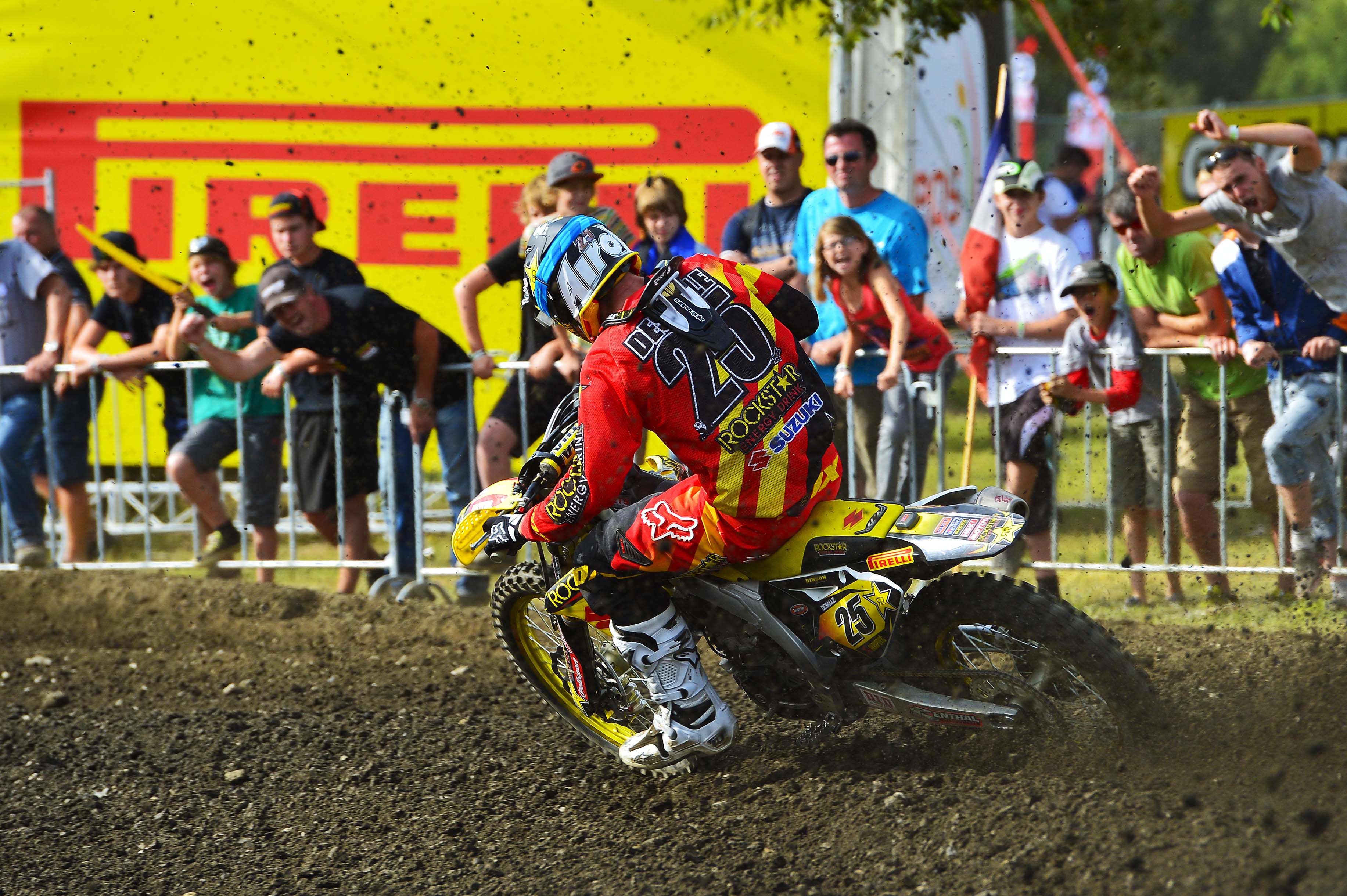 Бастонье (Бельгия), 19 августа 2013 г. – Дуэль, разразившаяся на песчаной трассе в Бастонье, где прошел Гран При Бельгии, завершилась победой Клемана Десалля, который поднялся на верхнюю ступень подиума перед лидером класса МХ1 Антонио Кайроли. Эта победа оказалась очень эмоциональной и важной для гонщика команды Suzuki, который сражался на шинах Pirelli Scorpion MX MidSoft 32F на переднем колесе и Scorpion MX MidSoft 32 на заднем.Аналогичный выбор шин сделал и его соперник с Сицилии, который смог сохранить за собой отрыв в 90 очков в личном зачете за два этапа до конца чемпионата. В первом заезде бельгиец упал, но сумел быстро подняться. Однако, несмотря все атаки, Кайроли так и не смог прорваться вперед и был вынужден довольствоваться вторым местом, зная, что по результатам второй гонки у него еще остается шанс на общую победу в Гран При. План Десалля на вторую гонку удался на славу: после атаки во втором повороте он обогнал Кайроли и уверенно контролировал ход гонки вплоть до самого финиша. Перед своими домашними болельщиками Кевин Страйбос и Кен Де Дайкер завоевали четвертое и шестое места соответственно.
