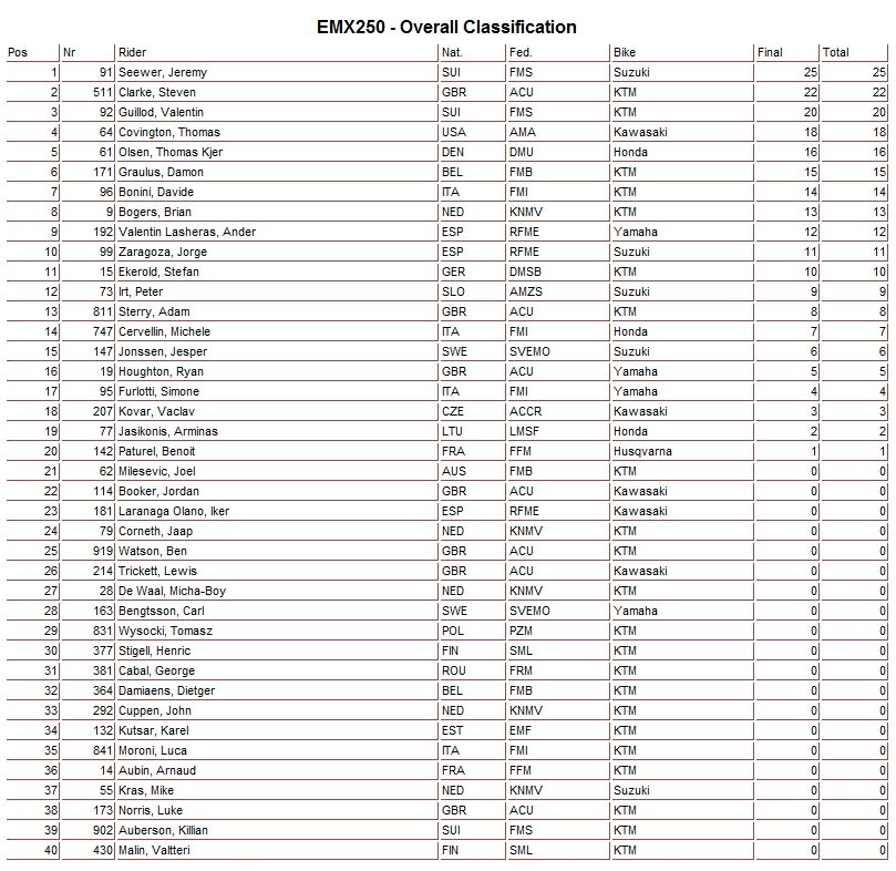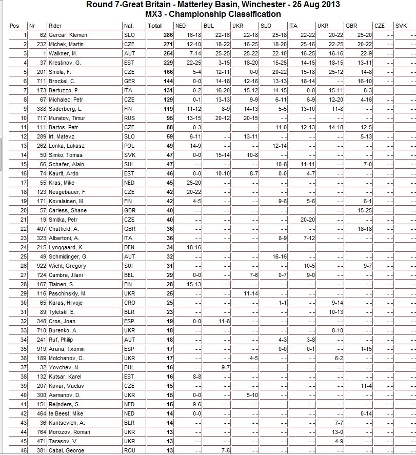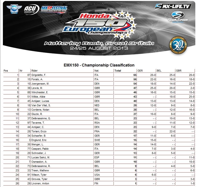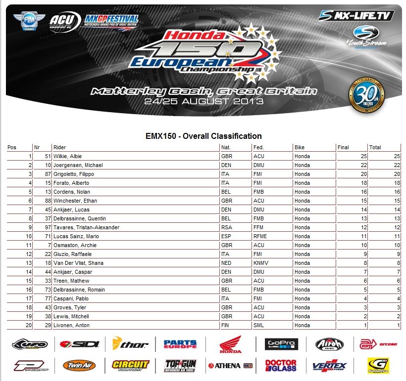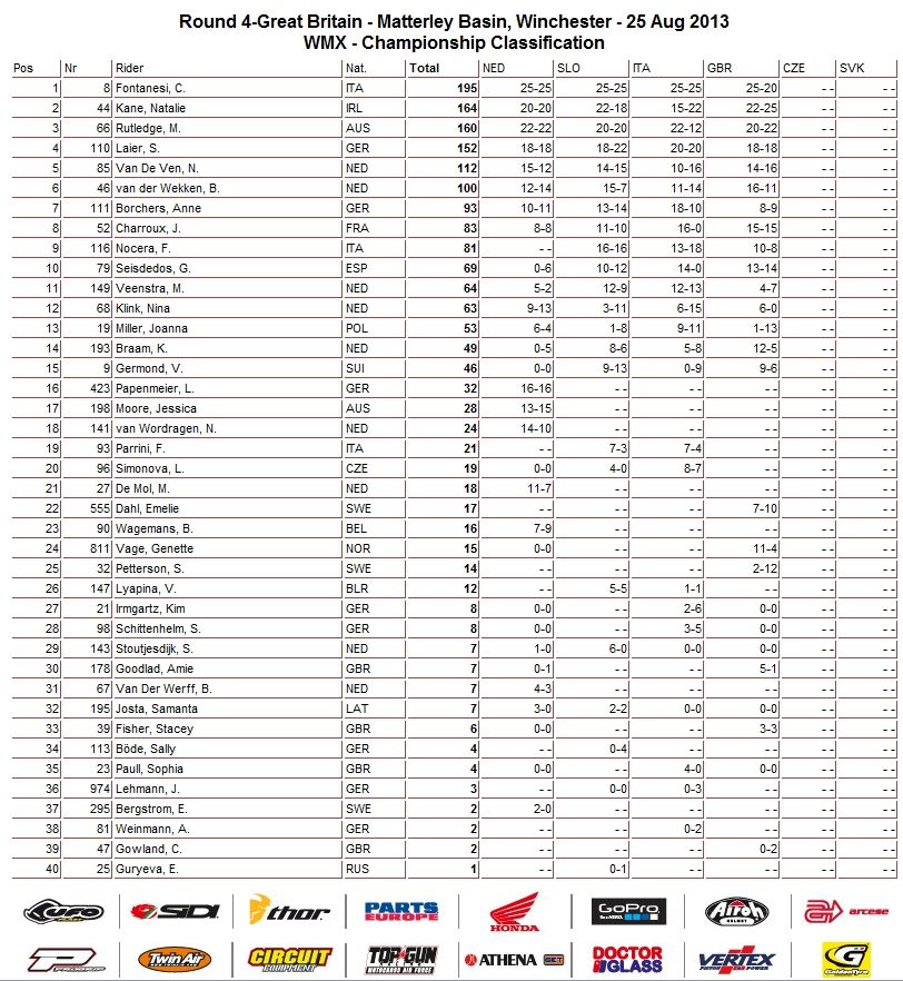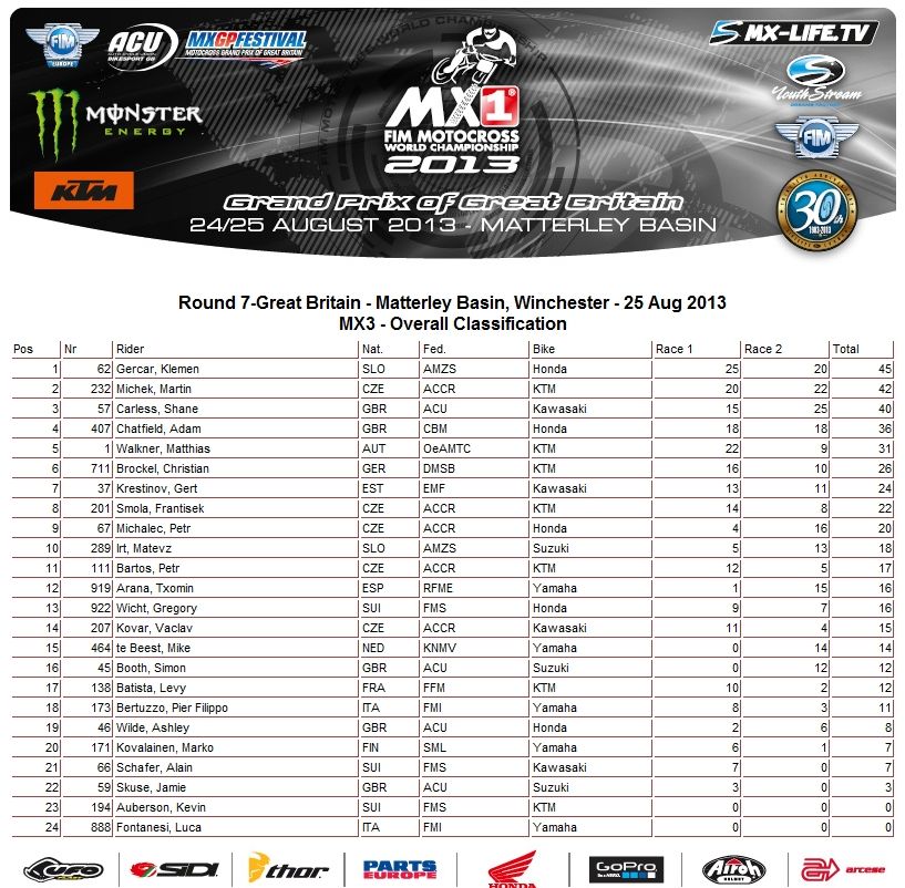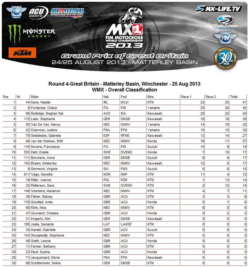 Предлагаем вам ознакомиться с результатами Matterlеy Basin MXGP Festival 2013: