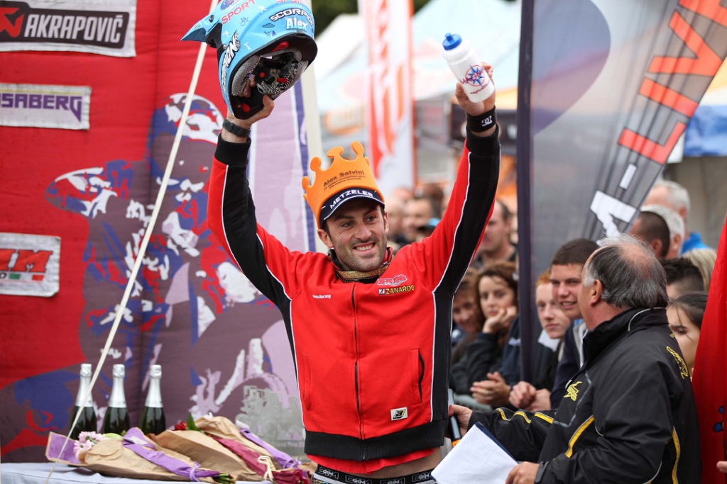 По приезду во Францию Алекса Сальвинии и его ближайшего преследователя Пьера Александра Рене (Husaberg) разделяло 33 очка. Несмотря на ужасную погоду в субботу вечером гонщик Metzeler был вдохновлен новой победой. «Вот это облегчение! – признался сияющий Сальвини. - Прошло уже очень много лет с тех пор, как я боролся за первый титул в мотокроссе или Эндуро.Сезон получился великолепным!» Кроме того, гонщик HM Honda выиграл и воскресное мероприятие, подтвердив тем самым свою силу в классе Е2 в текущем сезоне. И вновь совершенно по-разному сложился этап для остальных гонщиков Metzeler. Например, напарник Сальвинии по команде Симоне Альбергоне не смог финишировать ни в один из дней Гран При. А вот Иван Сервантес (KTM) занял второе и пятое места, что позволило ему оказаться на третьем месте по итогам сезона. Его напарника Джонни Аубертапостигла неудача в первый день, но в воскресенье он собрался и взял реванш вторым местом.