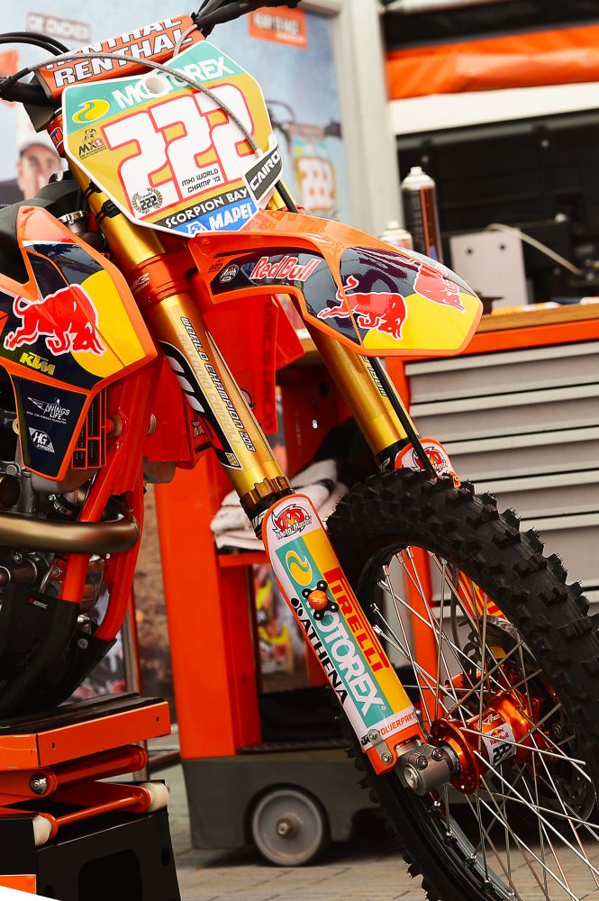 Приверженность компании Pirelli мотокроссу и успешные выступления имеют место в течение многих лет, а победы множатся благодаря сотрудничеству с командой КТМ и целой плеядой ее талантливых гонщиков. Подтверждением этих фактов служит то, что с 2010 года компания Pirelli завоевала восемь титулов (в обоих классах): сочетание австрийского бренда с шинами Scorpion MX оказалось очень действенным. Кайроли нет равных в классе МХ1 в течение последних четырех лет, а Джефри Херлингс завоевывал чемпионский титул в классе MX2 два последних сезона и сравнялся по этому показателю с Кеном Роксеном и Марвином Маскуином. Чтобы понять, какой объем работы выполняет компания для участия в мотокроссе, необходимо упомянуть, что на все гонки Гран При было привезено 6882 шины. Из них 1685 шин было использовано, 2550 были шинными наполнителями, а 1320 шин помогли одержать 14 побед на Гран При в классе МХ1 и 16 побед в классе МХ2.