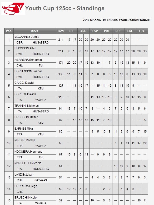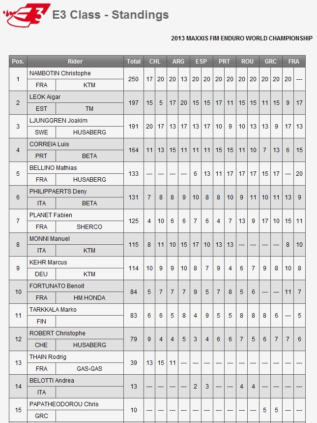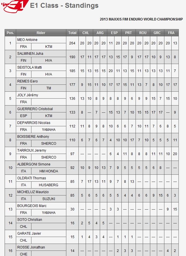 Мировое эндуро 2013: Итоги сезона. 11.09.2013 Роман Мишенев (_) Итоговые результаты 2013 Maxxis FIM Enduro World Championship во всех классах... Комментарии Комментарии к этой статье запрещены.
