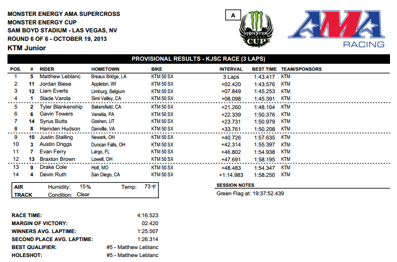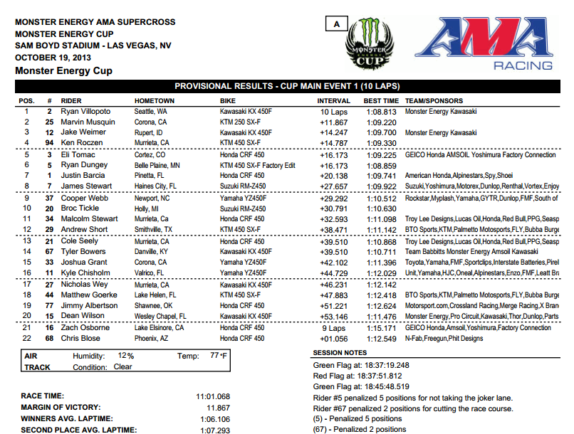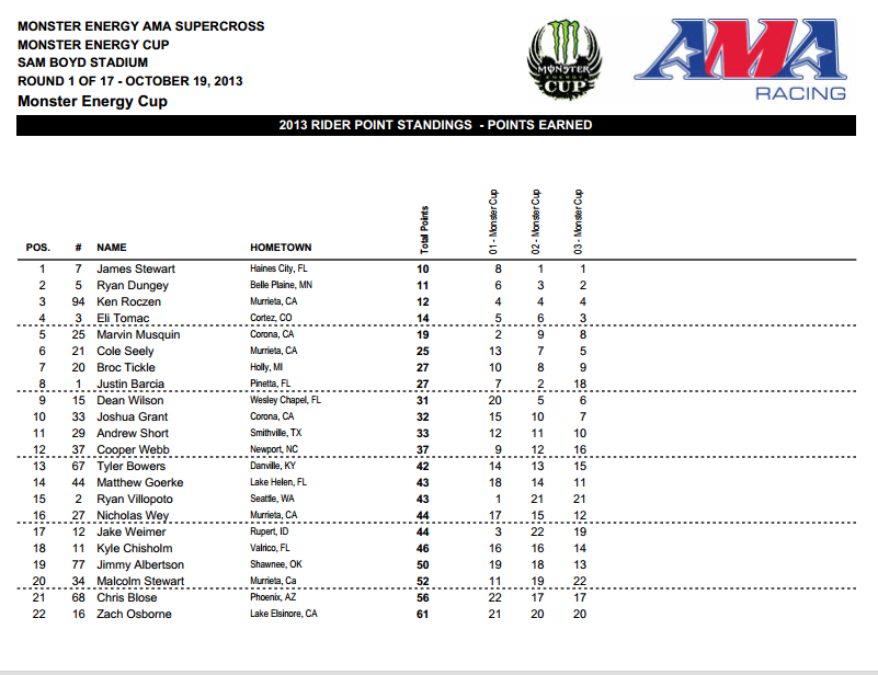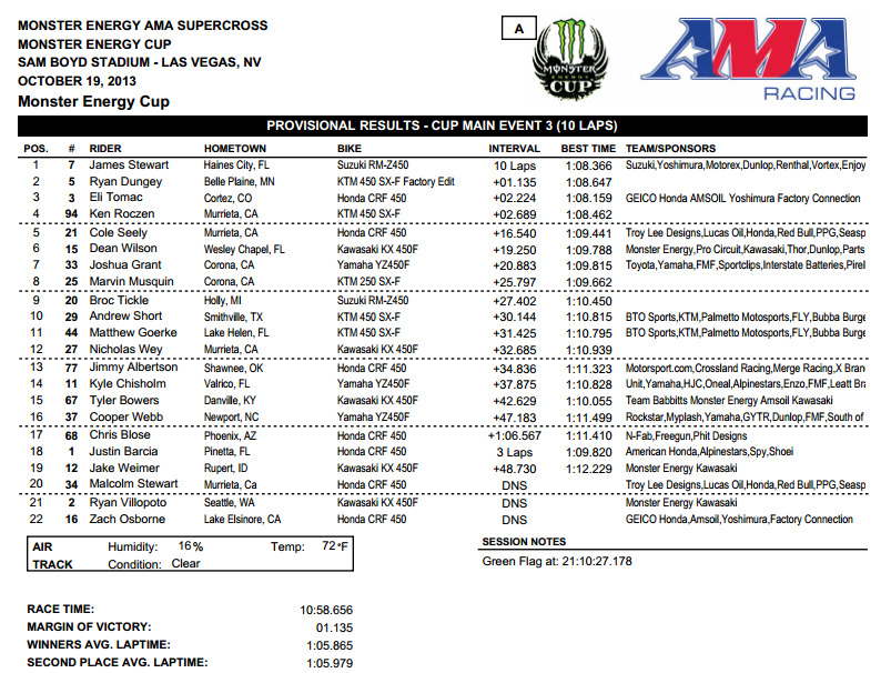 Monster Energy Cup 2013 - прошел в минувшую субботу на стадионе Сэм Бойд в Лас-Вегасе. Главный приз - миллион долларов, как и в прошлом году, так и не смог выиграть ни один из участников.