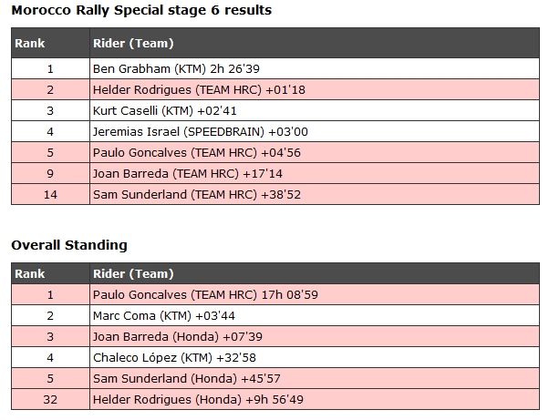 На пяти этапах из шести гонщики команды смогли показать высокий результат и вот он итог: Паоло Гонсалвес - Чемпион мира по ралли рейдам. Второе место завоевал гонщик КТМ - Марк Кома, на третьей позиции представитель "красных" - Джоан Барреда.