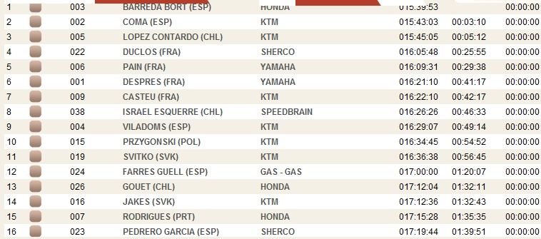 Он стал провальным для самых известных участников гонки, включая самого Сирила Депрэ. Он потерял более 40 минут, так как за 12 км до финиша мотоцикл закипел, и он смог финишировать лишь 16-м. Лидер общего зачета и вчерашний победитель Барредо Борт финишировал на 6 позиции