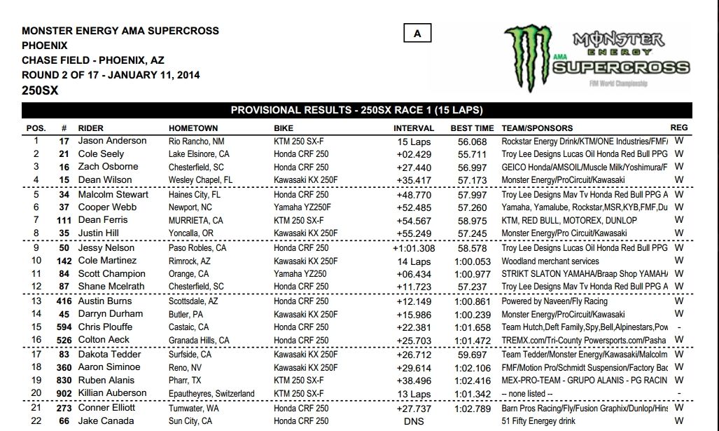 Вчера на треке в Финиксе (Аризона) прошел второй этап АМА Суперкросс 2014 (Monster Energy Supercross & FIM World Championship Series).