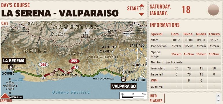Чилиец Игнасио Касале одержал победу на 13-м этапе ралли-рейда "Дакар" в зачёте квадроциклов.