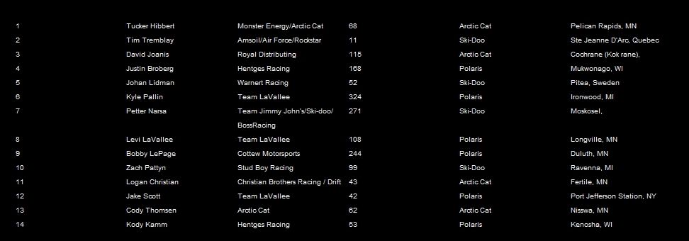 Победителем в классе  Про Опен  стал семикратный национальный чемпион - Такер Хибберт выступающий за команду ArcticCat.