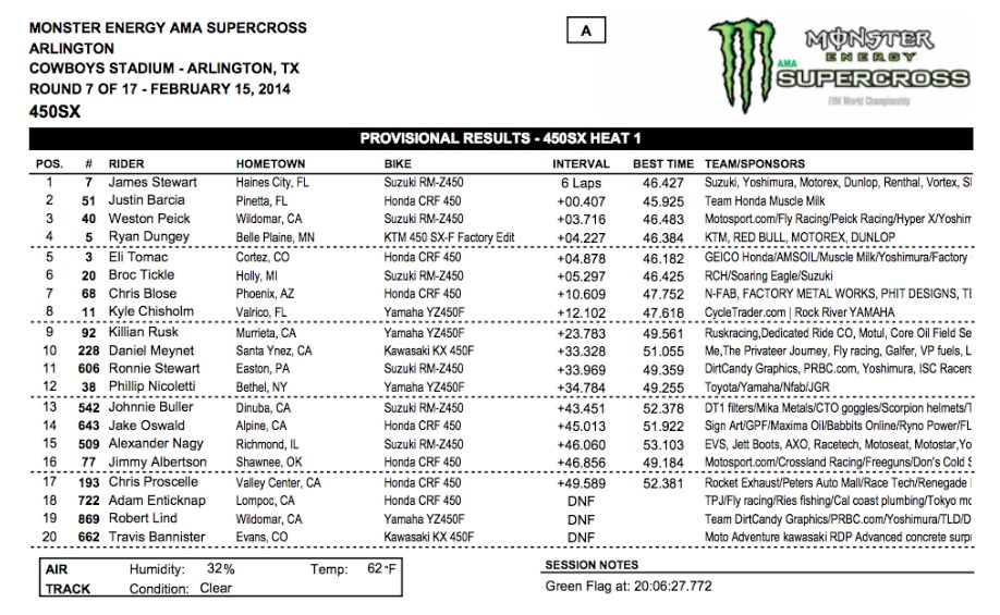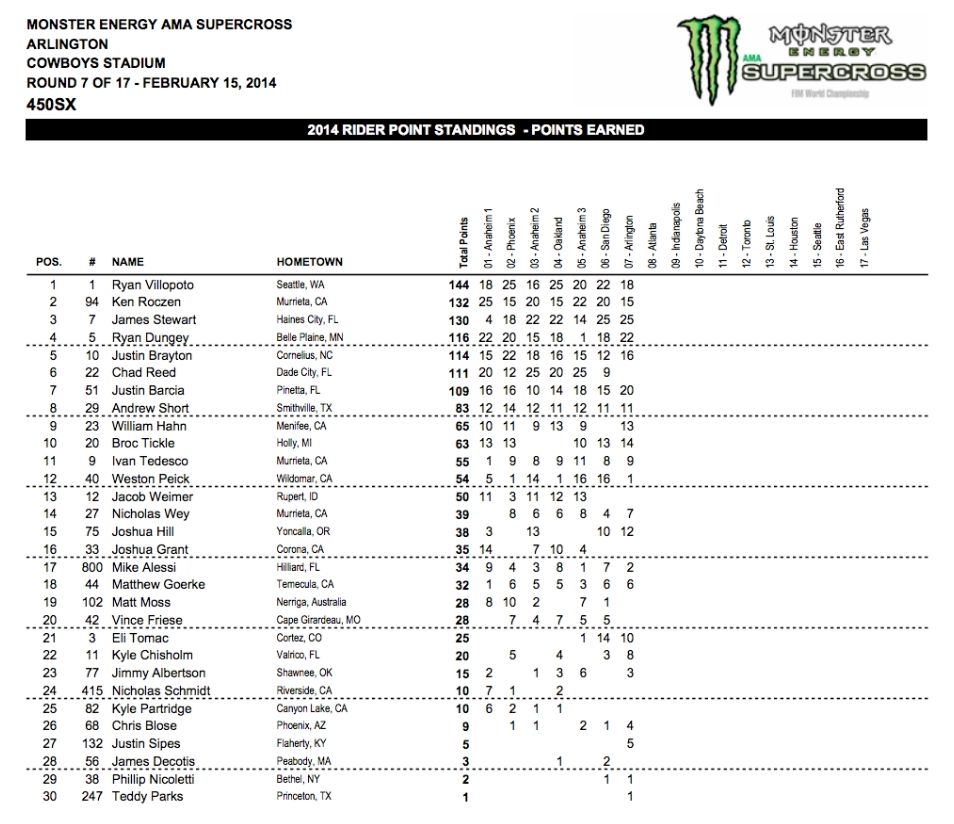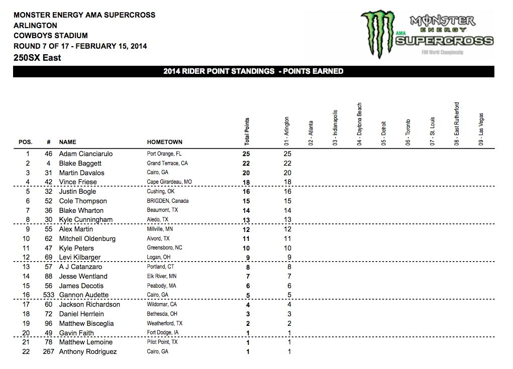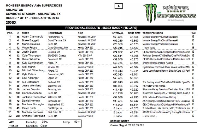 В минувшую субботу, 15 февраля на Cowboys Stadium в Эрлингтон (штат Техас), прошел седьмой этап АМА Суперкросс 2014 (Monster Energy Supercross, & FIM World Championship) в классе 450сс и первый этап в классе 250сс Восточного региона.