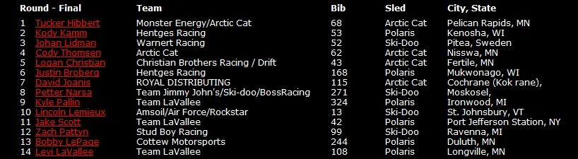 Результаты 6-гоэтапа AMSOIL Championship Snocross 2014