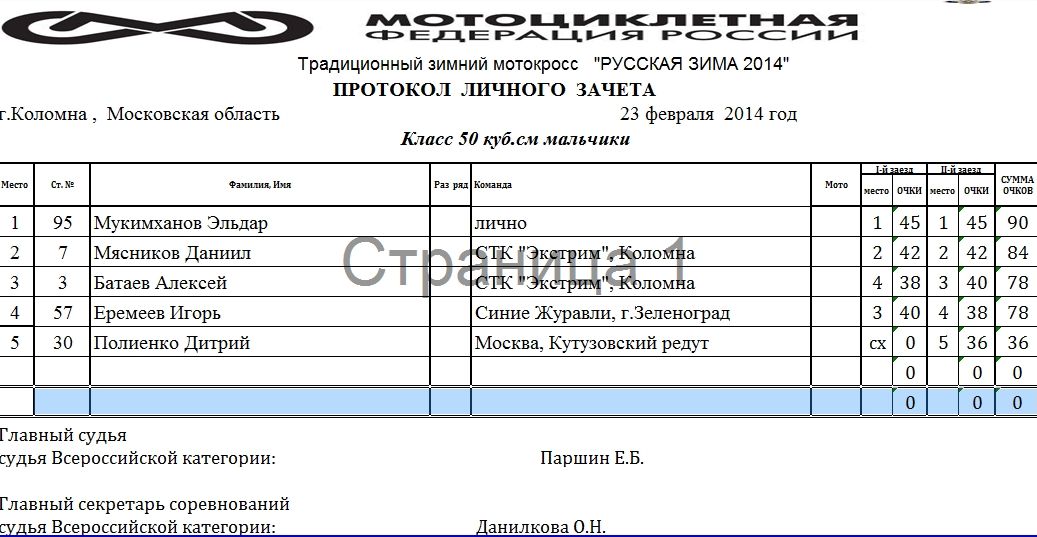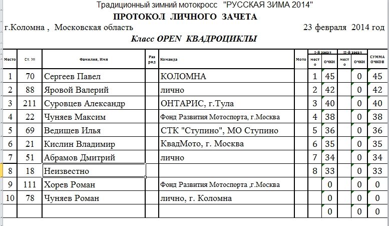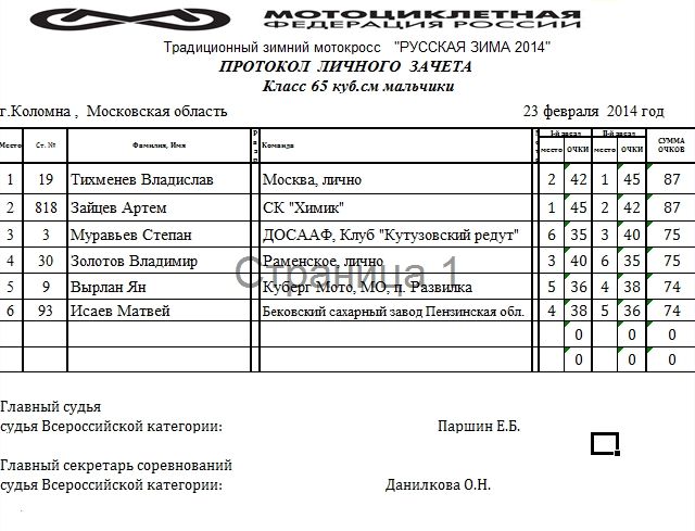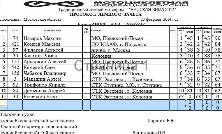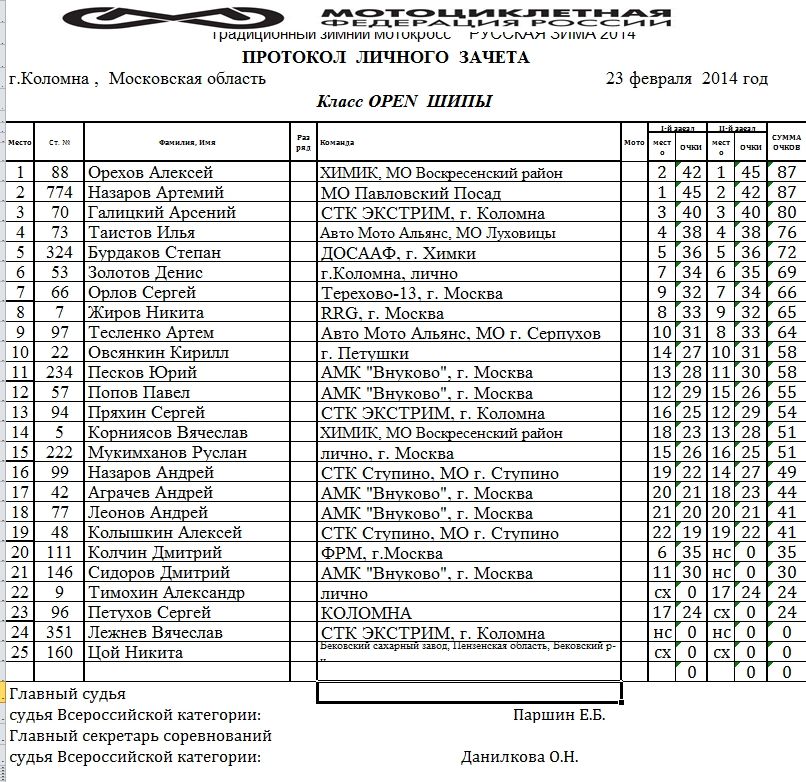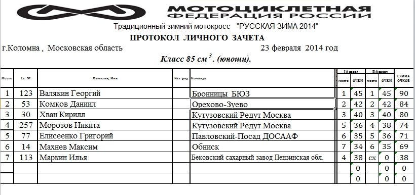 Традиционный мотокросс в Коломне - РУССКАЯ ЗИМА 2014. 26.02.2014 МФР Результаты... Результаты Традиционного зимнего мотокросса "РУССКАЯ ЗИМА 2014", состоявшегося 23 февраля в Коломне (Московская область): Комментарии Комментарии к этой статье запрещены.