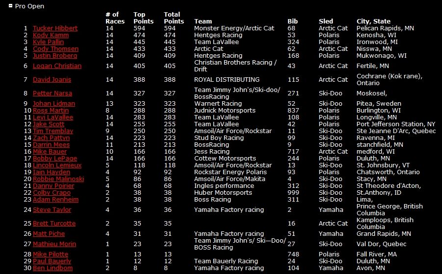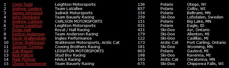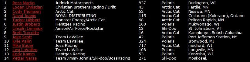 В этом классе победителем по итогам двух финалов стал - Росс Мартин на Polaris. Такер Хибберт выступающий за команду Arctic Cat, в первом финале одержал победу, но во втором финальном заезде был лишь 5-м.