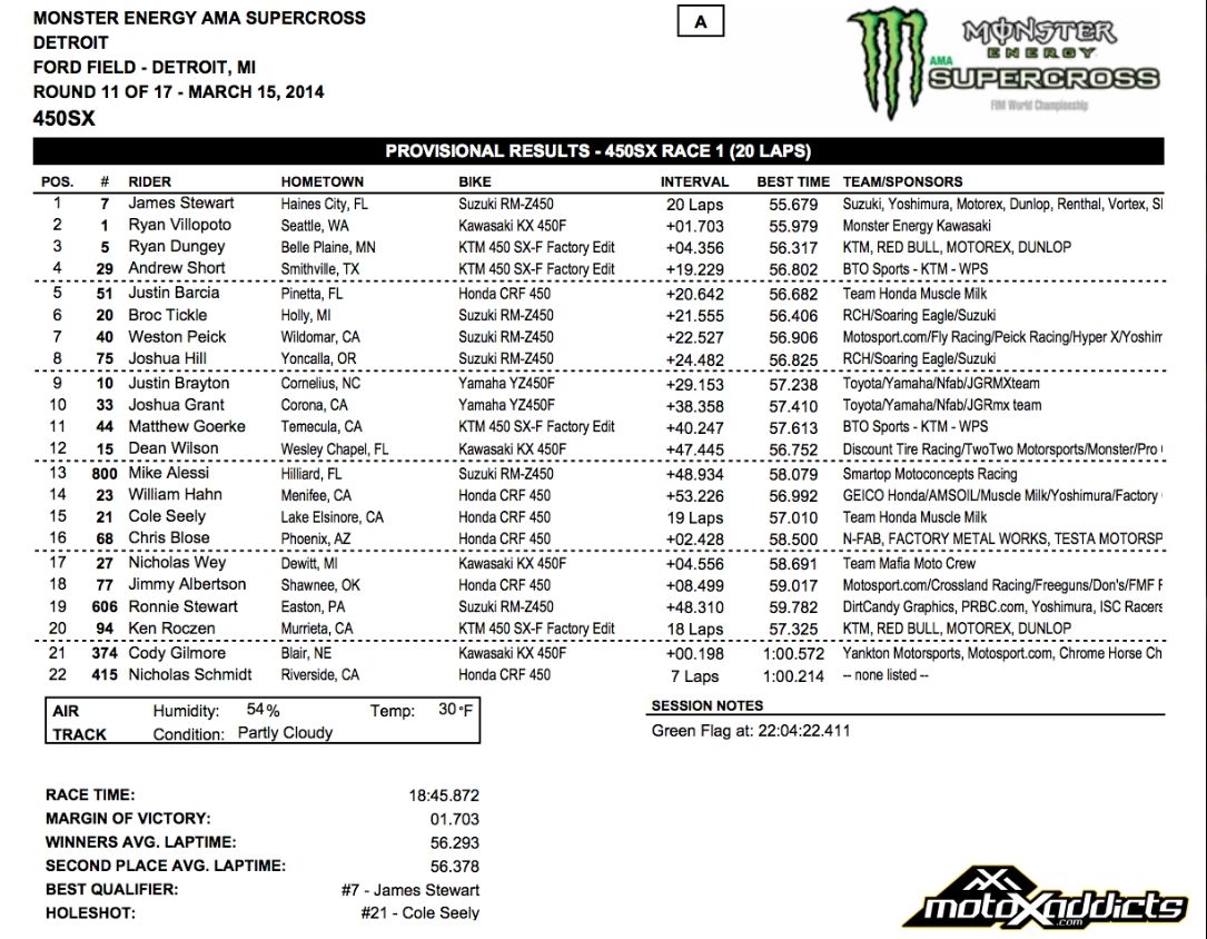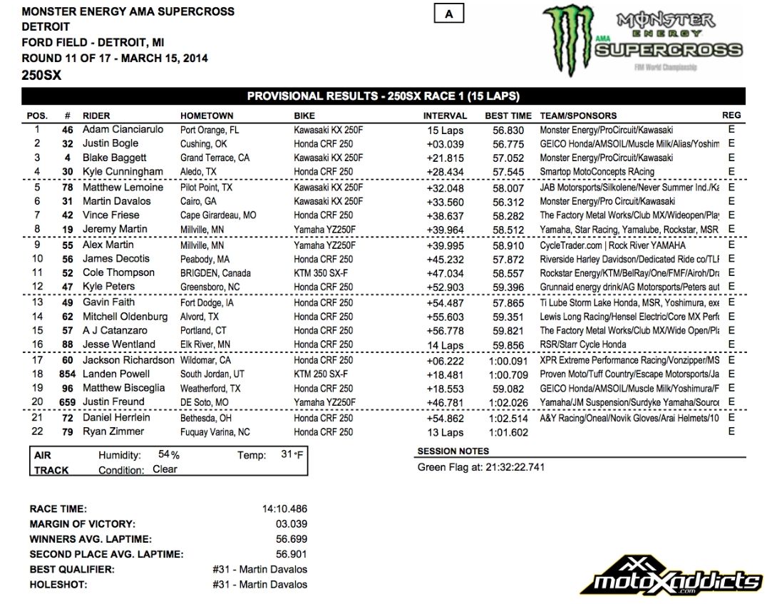 В минувшую субботу на стадионе Ford Field в Детройте прошел одиннадцатый этап Чемпионата АМА по суперкроссу 2014