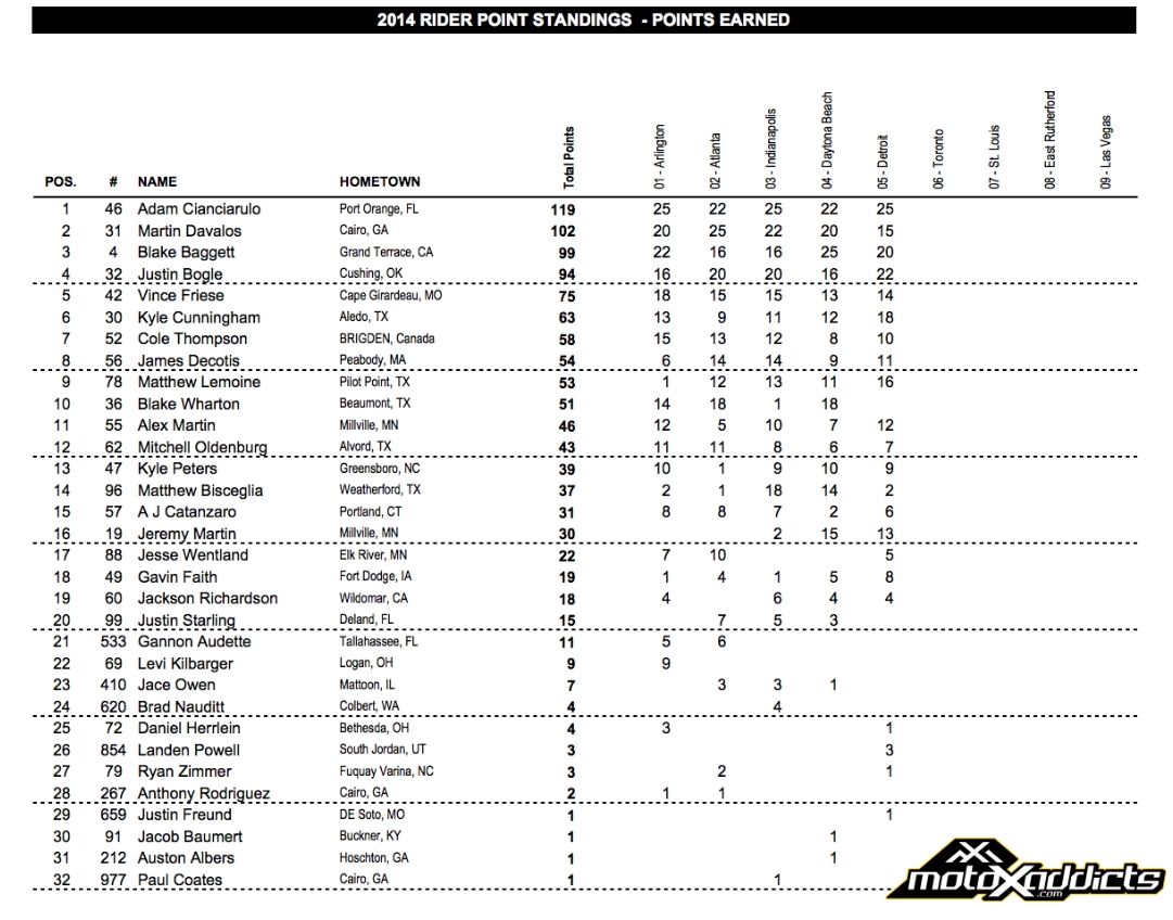 Ну, а в классе SX победителем стал Джеймс Стюарт, это его уже третья победа в этом сезоне. Второе и третье места заняли два Райана - Виллопото и Данжи. Четвертое и пятое места у Эндрю Шорта и Джастин Баршиа.