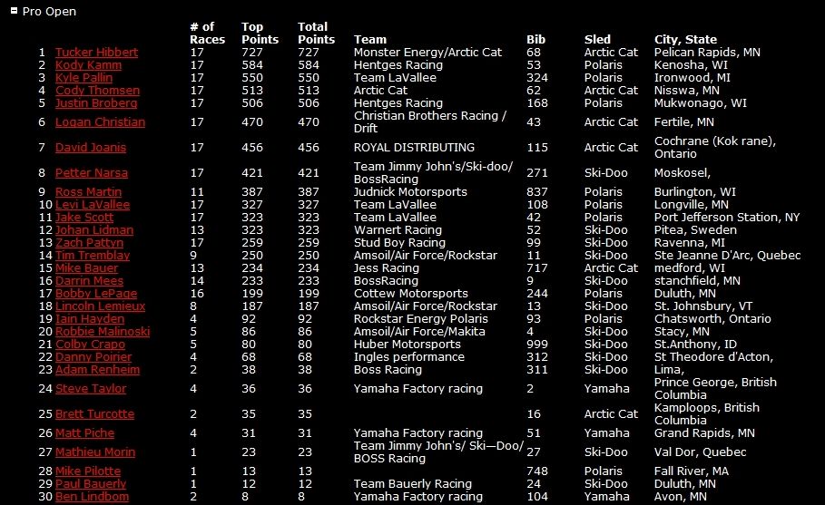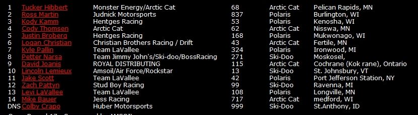 В итоговом зачете «золото» у Такера Хибберта, серебряным и бронзовым призерами стали гонщики Polaris– Коди Камм и Кайл Паллин соответственно.