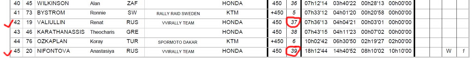 Российские пилоты Ренат Валлиулин и Анастасия Нифонтова заняли соответственно 37-е и 39-е места.