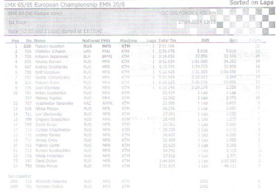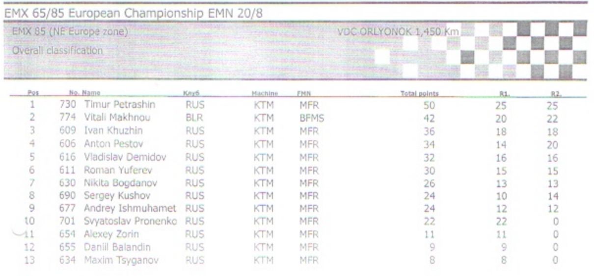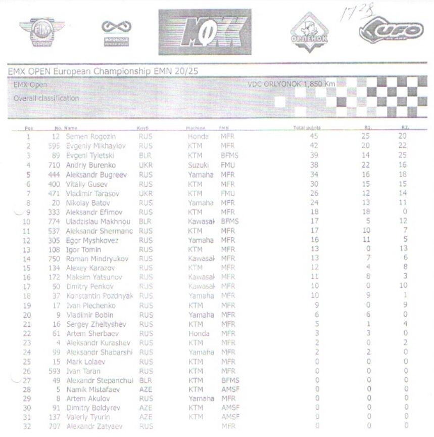 Протоколы результатов Чемпионата Европы, состоявшегося в ВДЦ Орленок.