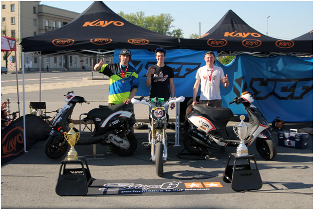 В этот раз нашу команду представляли четыре пилота в трех различных классах. Молодой Александр Федотов выступал в классе «Открытый» на скутере Piaggiozip, Григорий Пенкин и Андрей Савчук пилотировали свои Kayo 160 Proв классе «Питбайк», а Иван Купченко на этот раз совмещал участие в самом престижном классе «Суперспорт» на скутере и в новой для себя дисциплине «Питбайк» на своем YCFSP3.