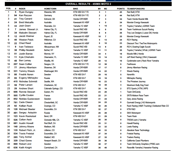Победителем в классе 450сс стал Райан Данжи. Второе место занял Кен Рокзен, на третьей позиции Трей Канард.