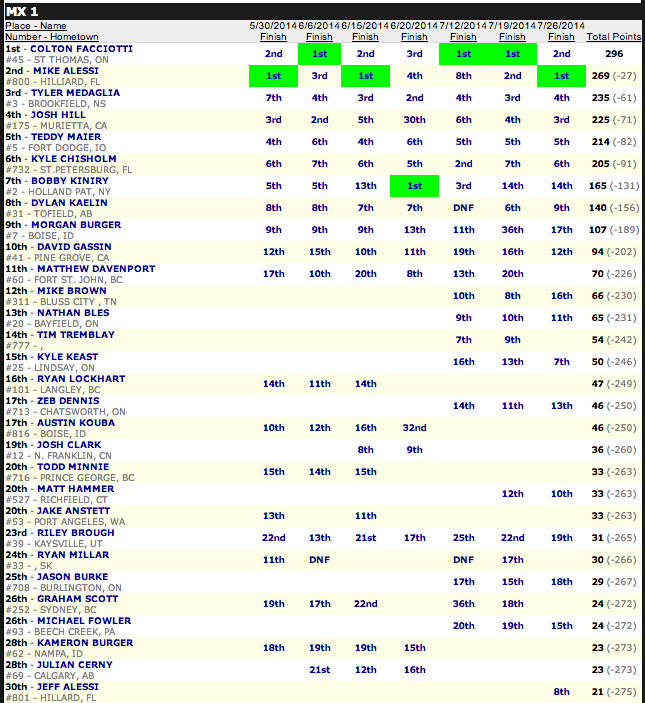 Календарь Canadian MX Nationals 2014 (оставшиеся этапы):