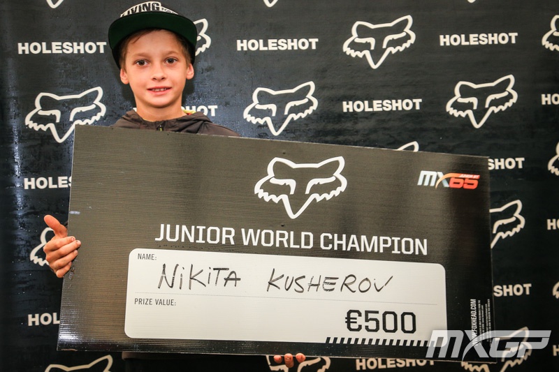 В классе 65 куб.см для Никиты Кучерова второй заезд не сложился – не очень удачный старт, напряженная борьба на дистанции, падение и финиш на 16 месте. Для Максима Касаткина наоборот все складывалось со старта очень хорошо. Он умудрился найти на стартовой машине свободную 5-ю ячейку (как он её увидел мы понять так и не смогли), с этой позиции он стартовал просто отлично, сразу включился в борьбу за 4-е место, но на втором круге, на приземлении после прыжка, налетает на камень и с травмой плеча сходит с дистанции. Досадная неудача для отличного спортсмена. Итог – 40 место.