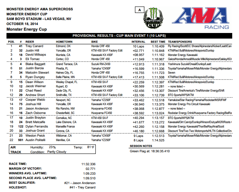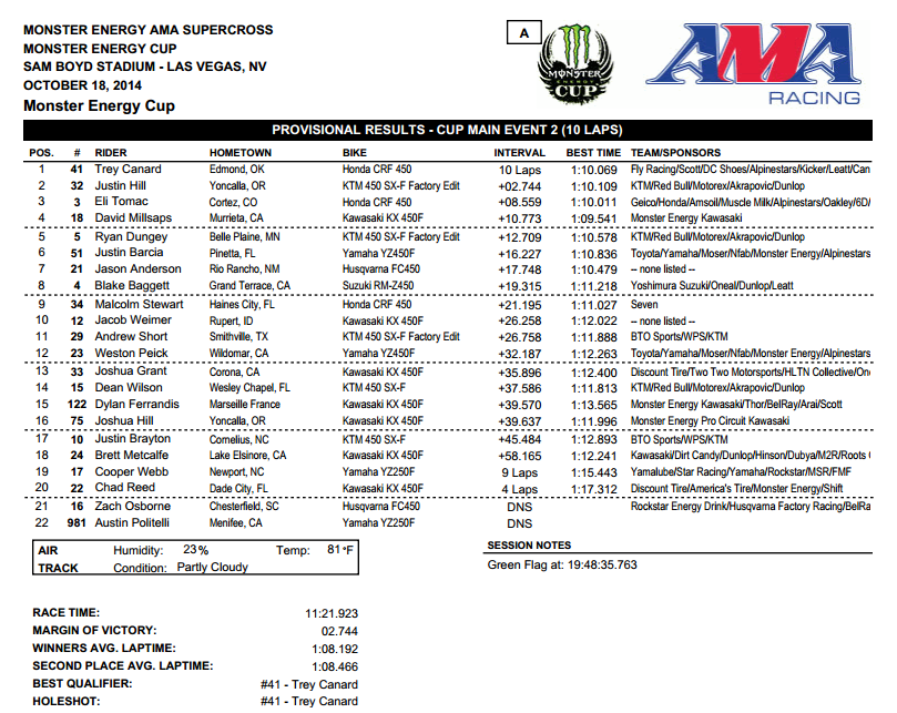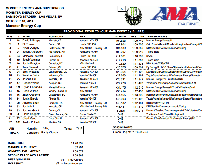 Результаты и видео трех финалов традиционного суперкросса в Лас-Вегасе.