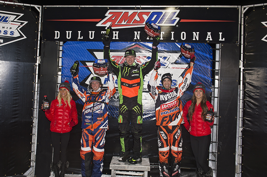 Первый этап американской серии по снегоходному кроссу (AMSOIL Championship Snocross) традиционно принимал у себя трек под названием «Дух горы» в Duluth (штат Миннесота), где с 28 по 30 ноября состоялось открытие сезона 2014-2015 гг. и прошли два финальных заезда в субботу и воскресенье.