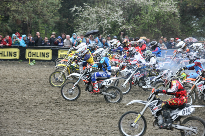 21 апреля, в день квалификационных заездов, условия были близки к идеальным: трасса была сухой, жёсткой, прогнозируемой, с хорошим зацепом — всё это способствовало удачному пилотажу. Но в день проведения Первого этапа Чемпионата Европы полил дождь, превращая грунт трассы в грязь, и это предъявило невероятно высокие требования к мастерству гонщиков. Из-за налипшей грязи вес мотоциклов достигал 200 кг. Особенно нелегко пришлось спорстменам класса 65см3 : тот из них, кто ехал медленнее, попросту застревал.