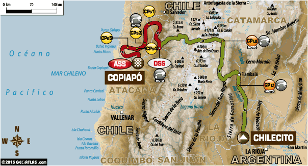 Вчера был очень непростой день. Выезд из лагеря в 4.30, лиазон почти 600 км и старт в 12.45 (по самой жаре) для мотогонщиков. Кквадроциклисты стартовали чуть позже в 13:20 + подъем на высоту 4700 м и дюны, дюны.... Но это была только разминка перед грозной реальностью, которая ожидала пилотов в пустыне Атакама. В течение последних 40 километров, гигантские дюны региона Копиапо стали препятствием на пути к бивуаку. Вот где понадобился опыт…
