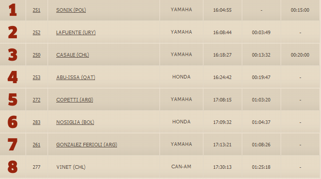 Поляк Рафаль Соник подтвердил свой высокий уровень мастерства, одержав победу на одном из сложнейших этапов. Второе место занял чилиец Игнасио Касале,