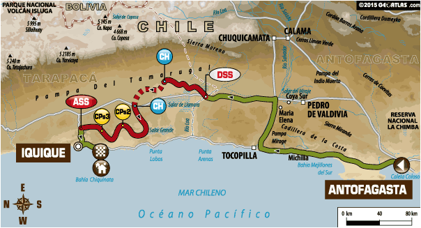 Шестой день ралли-марафона Дакар-2015 был проложен на север Чили, вдоль и по тихоокеанскому побережью. На пути в бивуаку, дорожки мотоциклистов и квадроциклистов вновь разошлись - каждому организаторы приготовили свой собственный маршрут.