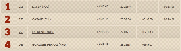 Победитель двух последних этапов поляк Рафаль Соник – финишировал вторым уступил лидирующую позицию чилийцу Игнасио Касале. Третьим финишировал представитель Уругвая – Сержио Лафуэнтэ.