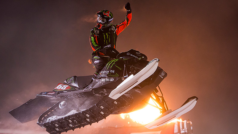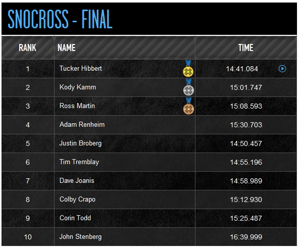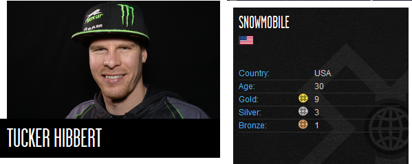 В классе SnoCross знакомые лица! На старт финала вышли участники американской профессиональной серии по снегоходному кроссу, в том числе и самый титулованный гонщик за всю истории снегоходного спорта Такер Хибберт, ему и досталась золотая медаль X-Games. Хочется отметить, что теперь в его активе их девять.