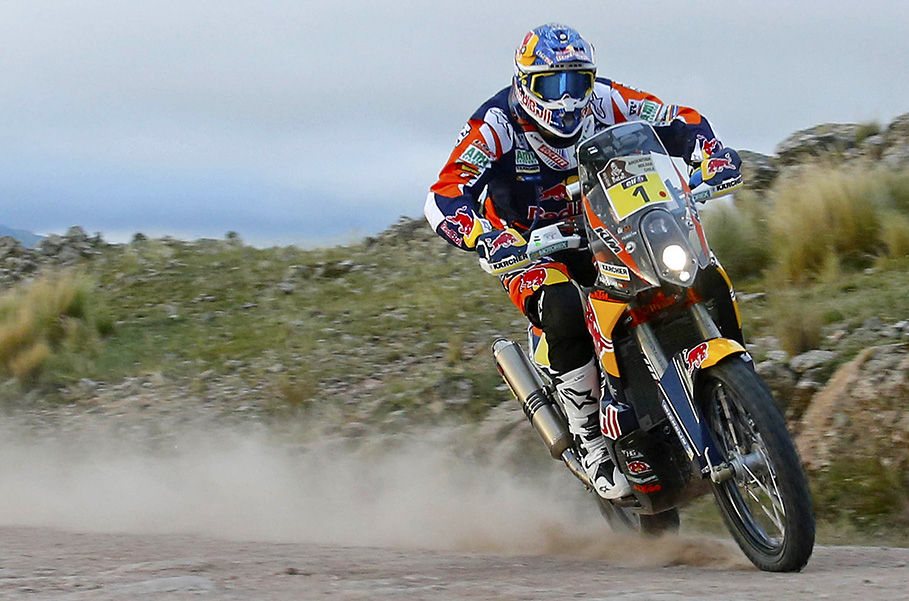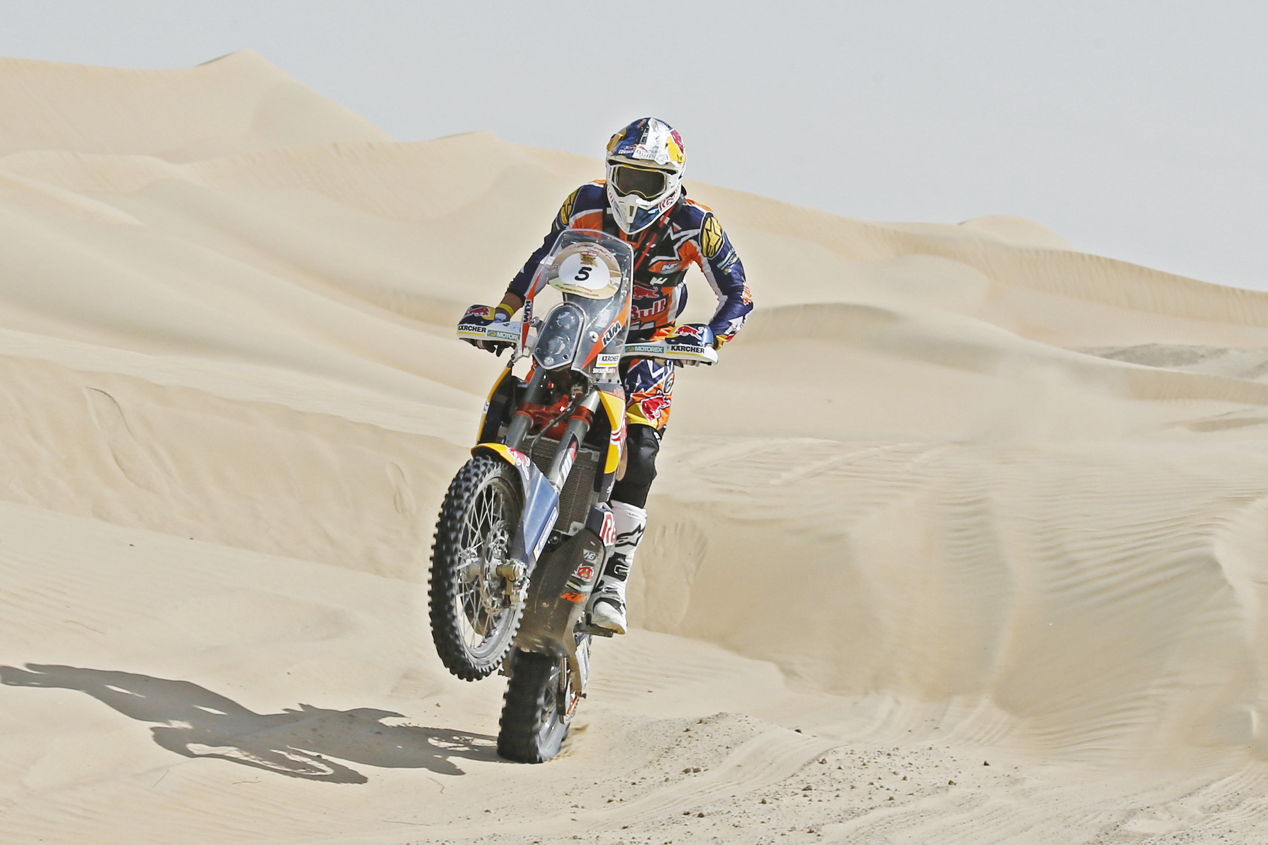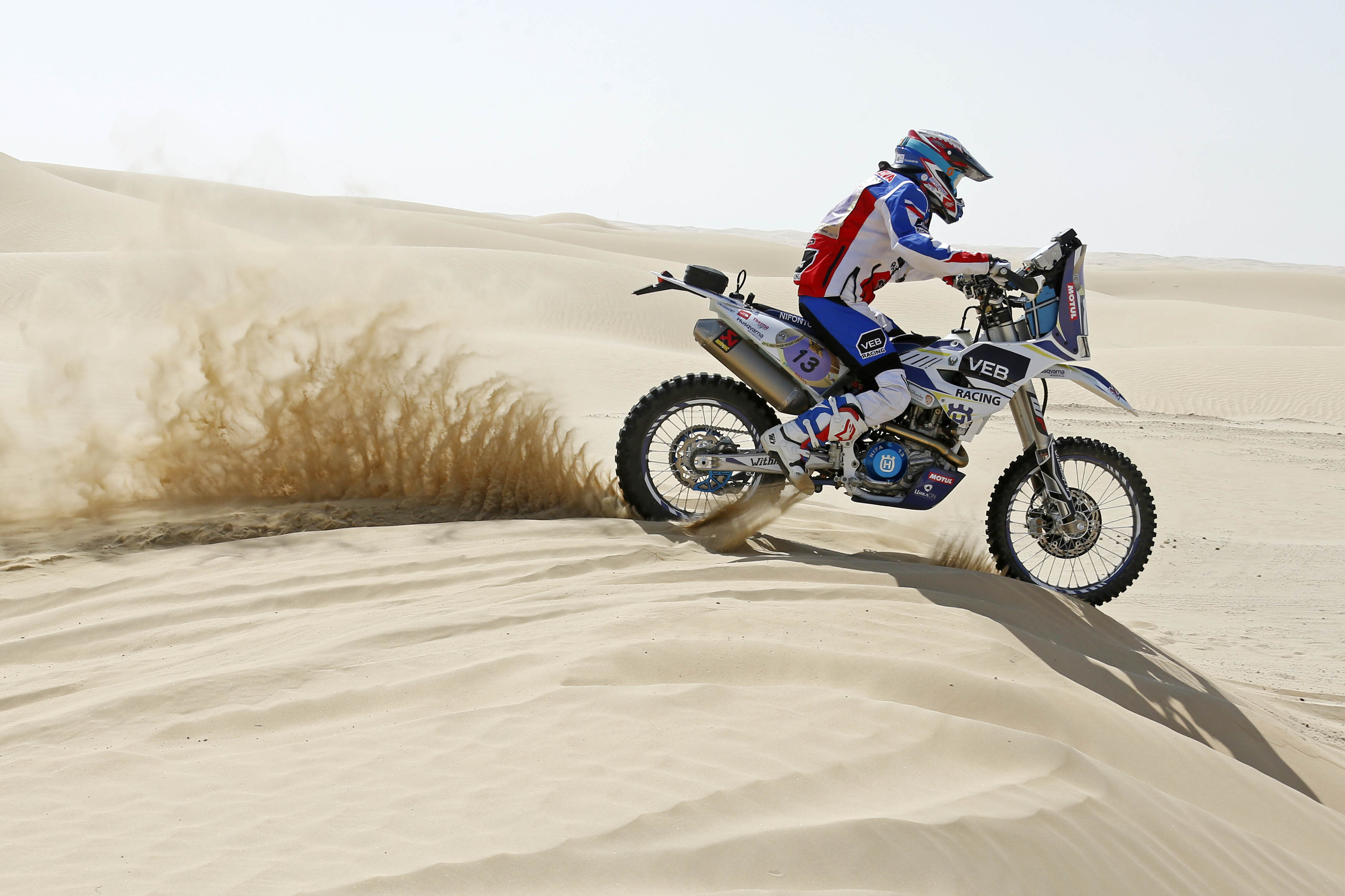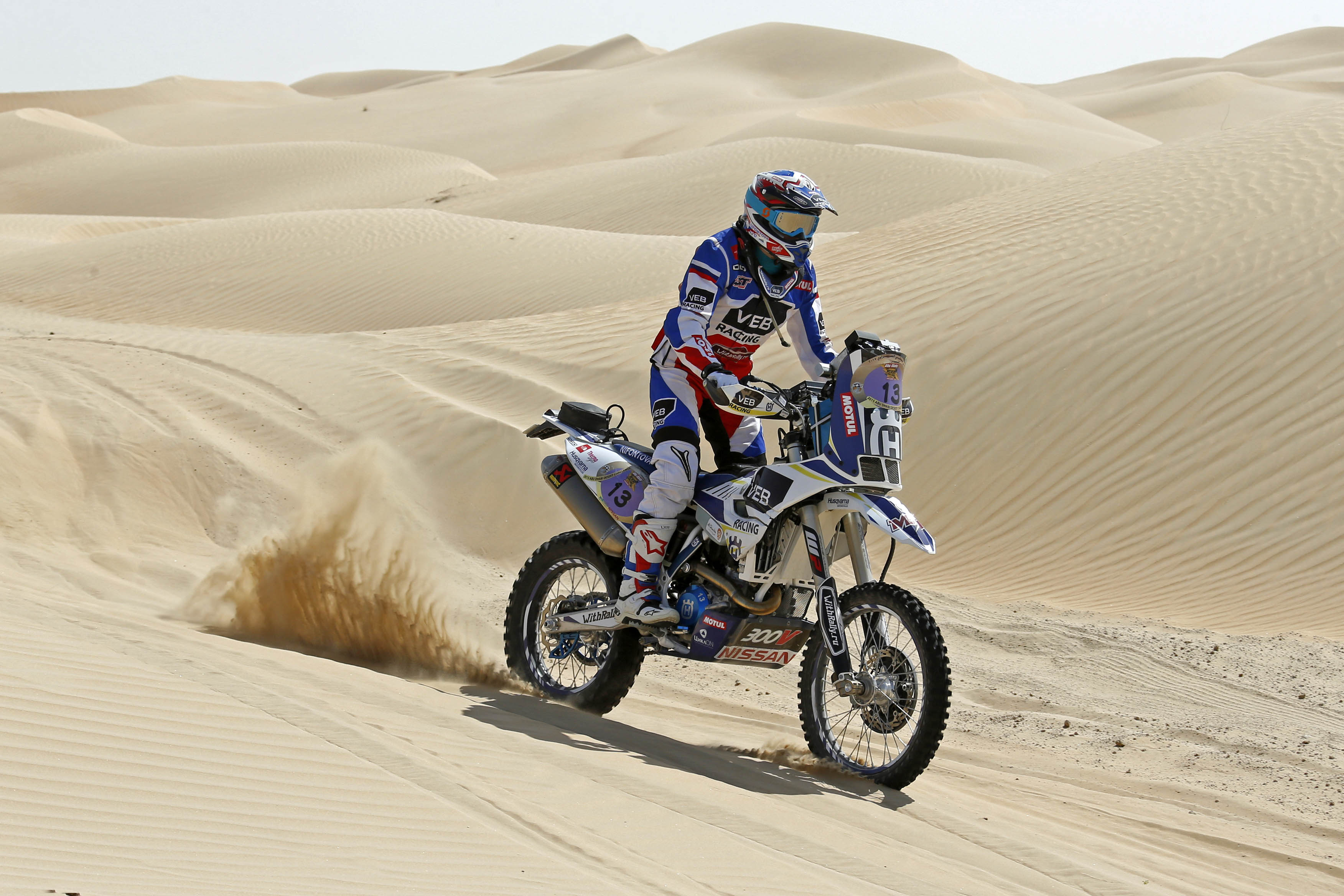 Сэм Сандерленд (КТМ) и Пауло Гонсалвес (HondaHRC) на второй и третьей позициях В квадроциклах лучшее время показал Махаммед Абу Иса (Yamaha), а в джипах первую победу на этапе отпраздновал арабский гонщик Яха Альхели (NissanPickup), на 2 минуты опередивший прошлогоднего победителя гонки россиянина Владимира Васильева (Mini).