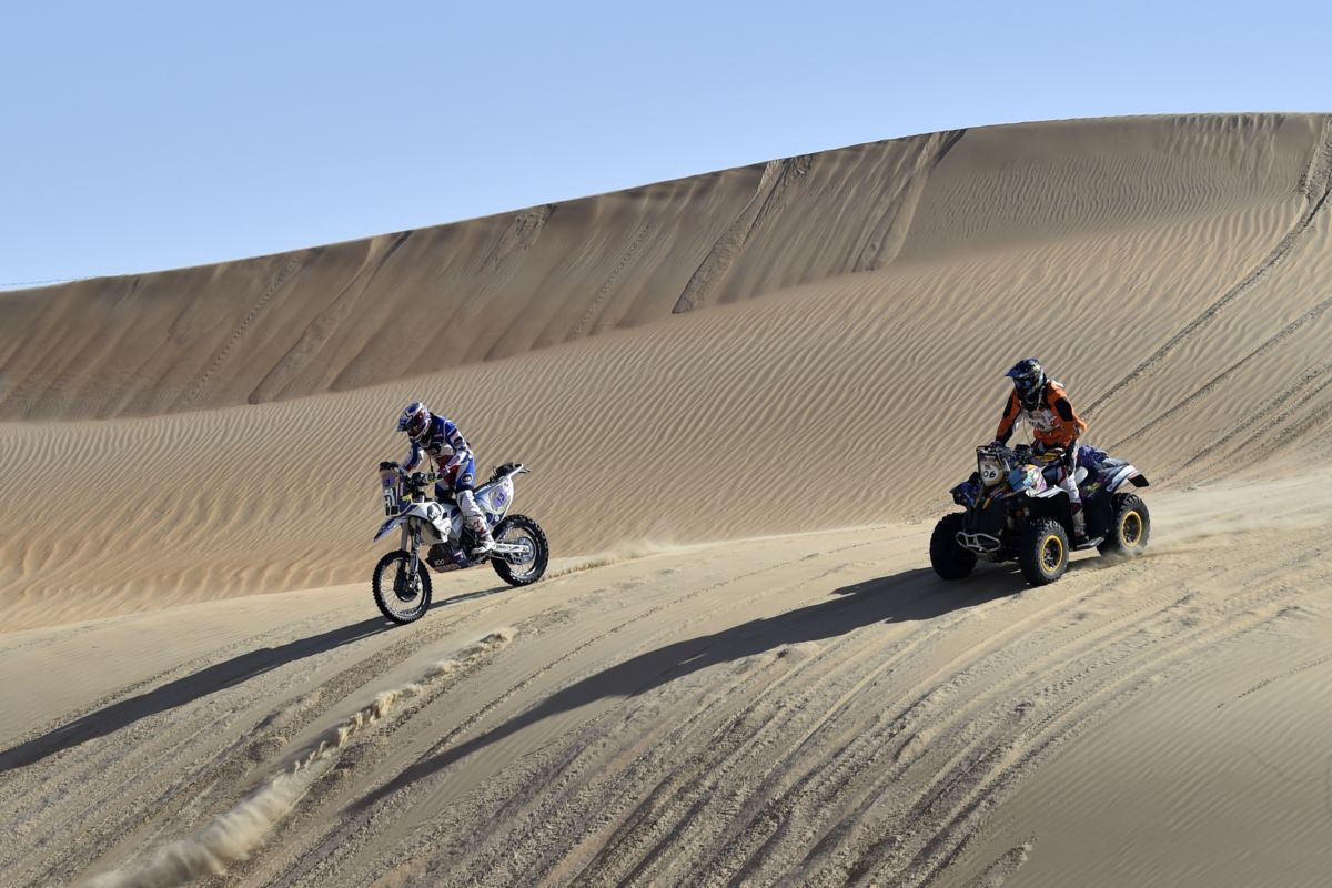Анастасия Нифонтова: «Гонка усложняется, жара накаляется, пустыня расставляет свои ловушки. Без приключений у меня сегодняшний день не обошелся. Стартовали мы тремя большими группами – масс-старт в линию. В нашей группе выделилась команда из 4-5 человек, кто ехал вместе в хорошем темпе. Уверенно преодолели первые 200 км. Потом начались высокие дюны, стало сложнее, я один раз «приложила» мотоцикл в песках, но ребята мне быстро помогли его поднять и быстро вернуться на трассу. Однако, через какое-то время я вдруг опустила глаза на руль и увидела горящую красную лампочку, сигнализирующую, что у меня упало давление в масле и мотор под угрозой. Переключив внимание на эту лампочку, я отвлеклась от трассы и очень жестко упала, ударившись ногами об руль и буквально воткнувшись головой в песок. Сознание не теряла, но голова загудела и ушибы на ногах стали болеть. Финальный отрезок и почти 70 км ехала очень аккуратно, а загоревшаяся лампочка оказалась ложной тревогой, просто где-то датчик перемкнуло, и через несколько километров лампочка сама благополучна погасла. В пустыне сегодня зафиксировали +44 градуса, очень жарко, рельеф на палящем солнце перестает четко читаться, повышаются риски ошибиться и упасть. Меня все очень сильно поддерживают – организаторы, команда, Антон Григоров, друзья и болельщики. Это помогает не терять боевого расположения духа!».
