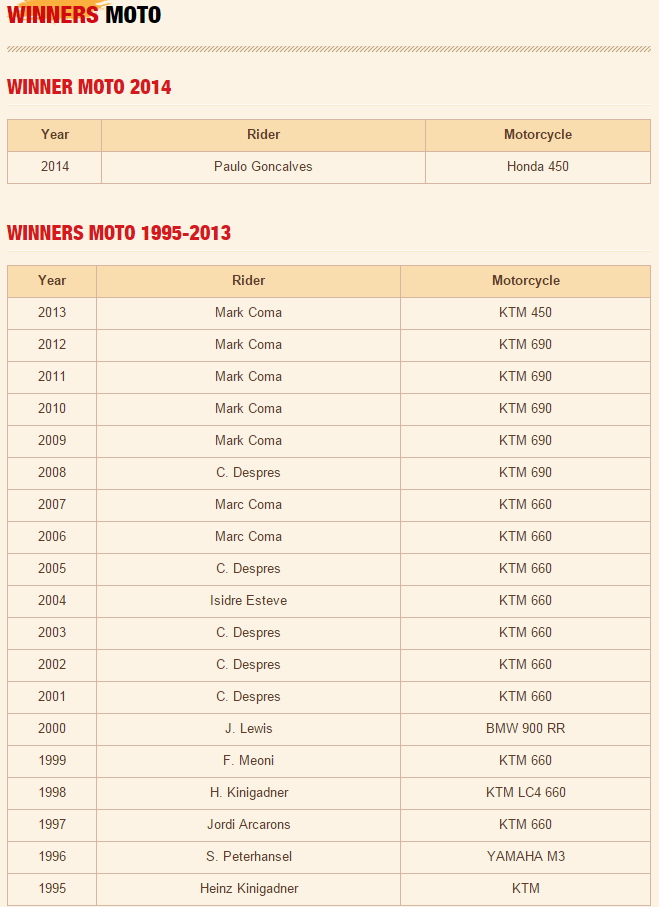 Победители за всю историю ралли-рейда 1995 - 2014: