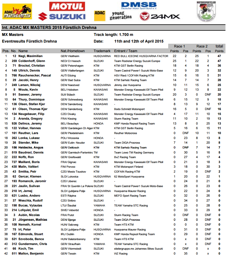 С полными результатами по всем классам вы можете ознакомиться здесь: http://www.adac-mx-masters.de/de/detailergebnisse-2015/fuerstlich-drehna-5211