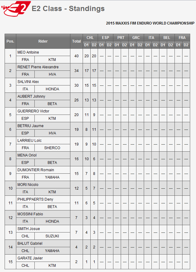Результаты первого этапа Чемпионата мира по эндуро 2015 в Чили.