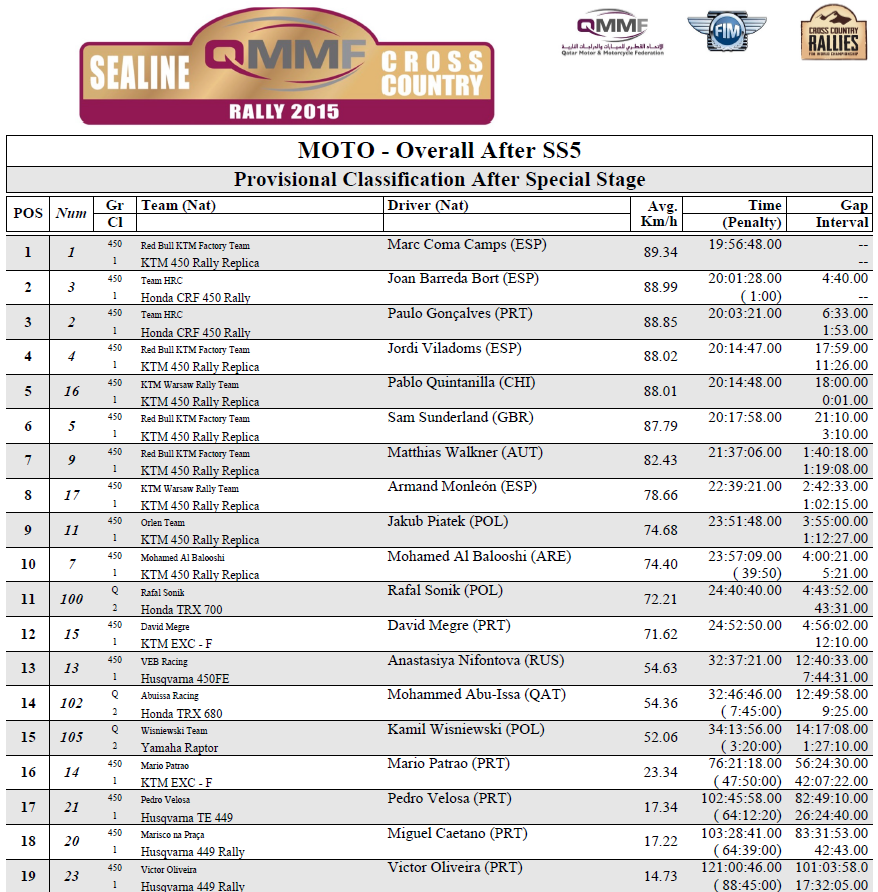 В категории мотоциклов победу в гонке одержал Марк Кома (КТМ), второе и третье место у гонщиков из Honda HRC Хуана Барреды Борта и Пауло Гонсалвеса.