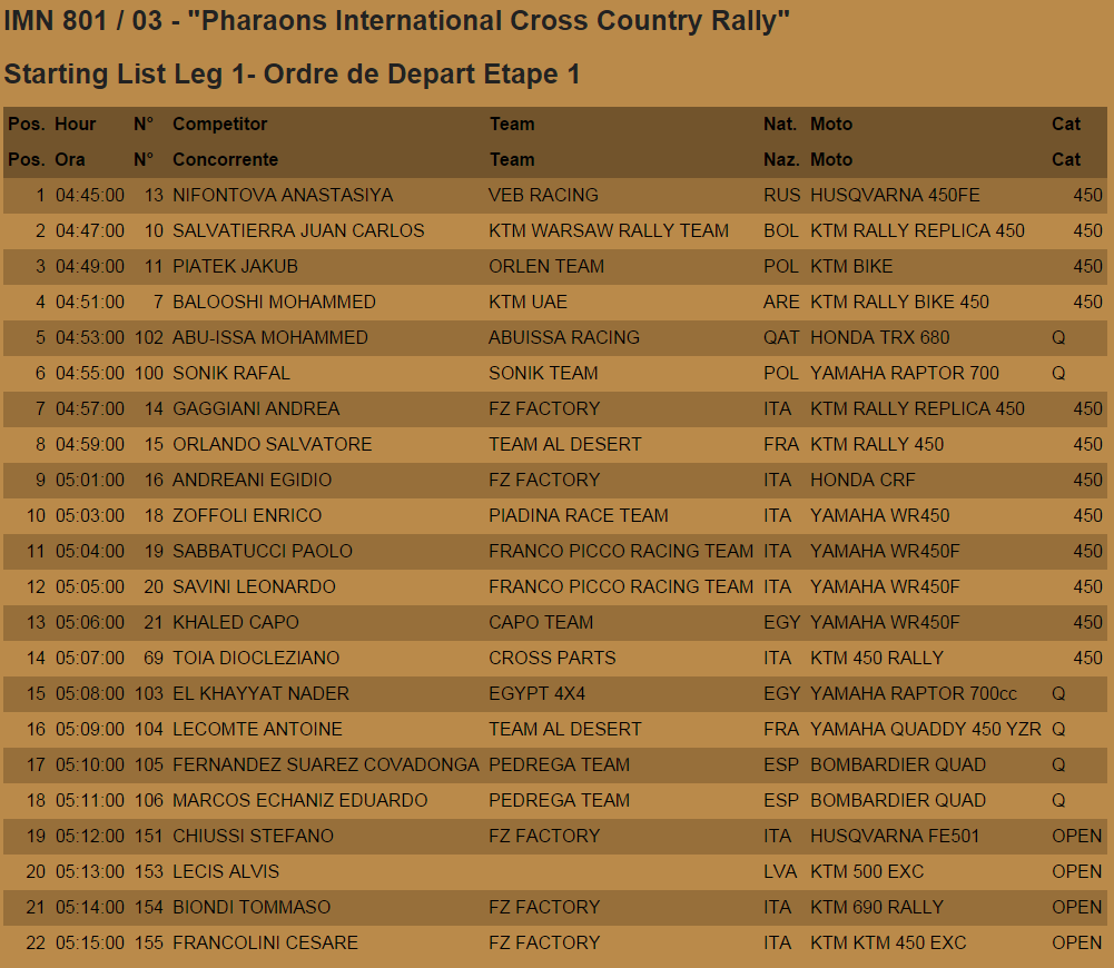 Команда VEB Racing и Анастасия Нифонтова успешно прошли все административные и технические проверки. Стоит отметить, что россиянка в предстартовый день гонки пользовалась особой популярностью у представителей СМИ. За день Настя дала несколько интервью представителям местного и европейского телевидения, рассказав об опыте гонок в Эмиратах, Катаре и командных задачах на ралли «Фараонов».