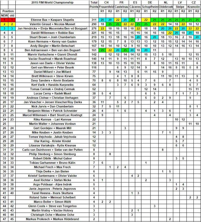 Победителями седьмого этапа Чемпионата Мира по Мотокроссу на мотоциклах с колясками 2015, который прошел в Чехии на треке в Крамолин, вновь стали голландец Этьен Бах и латыш Каспарс Ступелис.