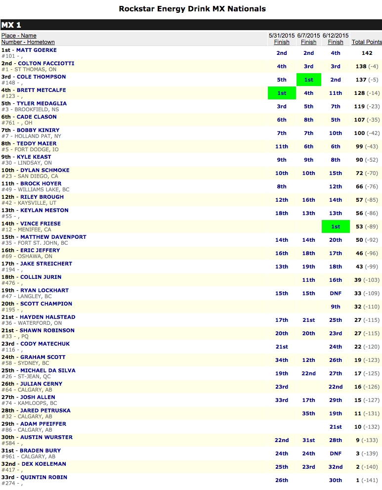 Итоги третьего этапа Canadian Rockstar Energy Motocross Nationals.