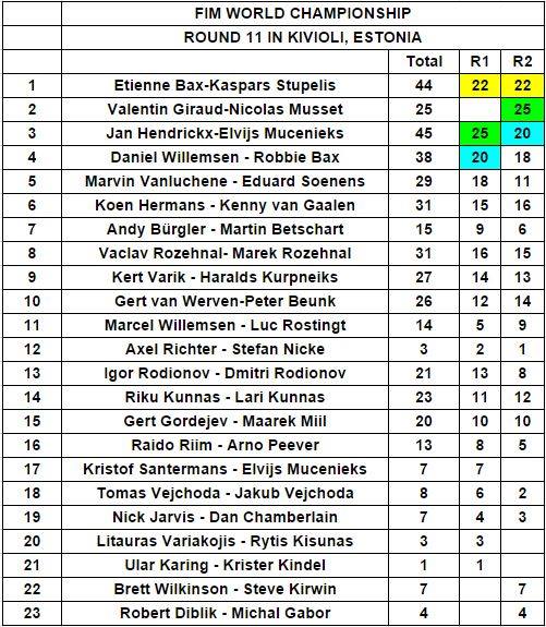Победу на Гран-При Эстонии одержали Этьен Бах и Каспарс Ступелис, которые продолжают лидировать и в общем зачете чемпионата. Второе место по итогам этапа у Валентина Гирауда и Николаса Муссэ, третьими финишировали Ян Хендрикс и Элвийс Мусеникс.