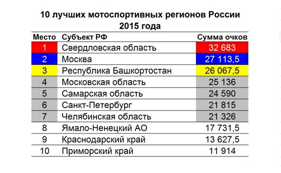 Лучший мотоспортивный регион России 2015 г.