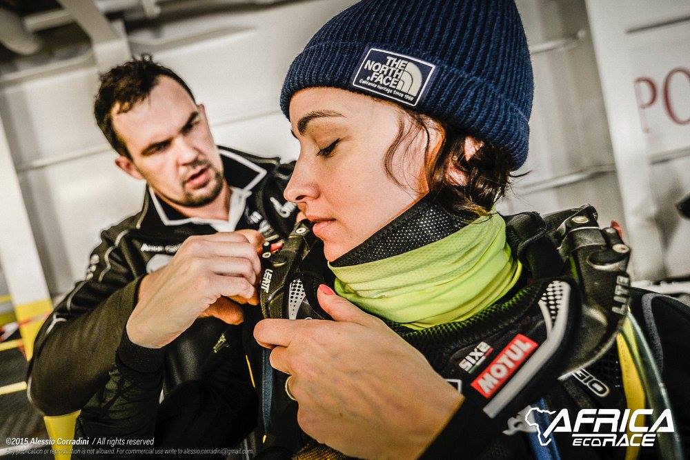 «Первые 50 км прошли великолепно, в хорошем темпе, но следующий отрезок, вплоть до зоны дозаправки (СР2) дался непросто. Физически не хватало сил, энергии, поэтому скорость упала. После небольшой передышки на дозаправке, где удалось перекусить энергетическими батончиками, попить воды и перевести дух, поехалось гораздо легче. Но пыль от обгонявших меня джипов и грузовиков не позволяла слишком сильно разгоняться, и я старалась держать средний темп, чтобы не рисковать. Гонка только начинается!»